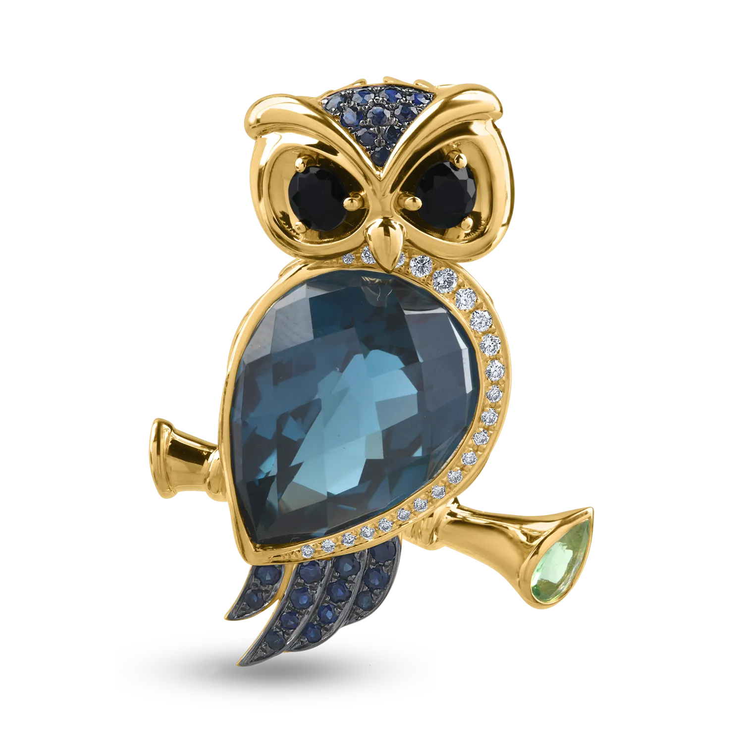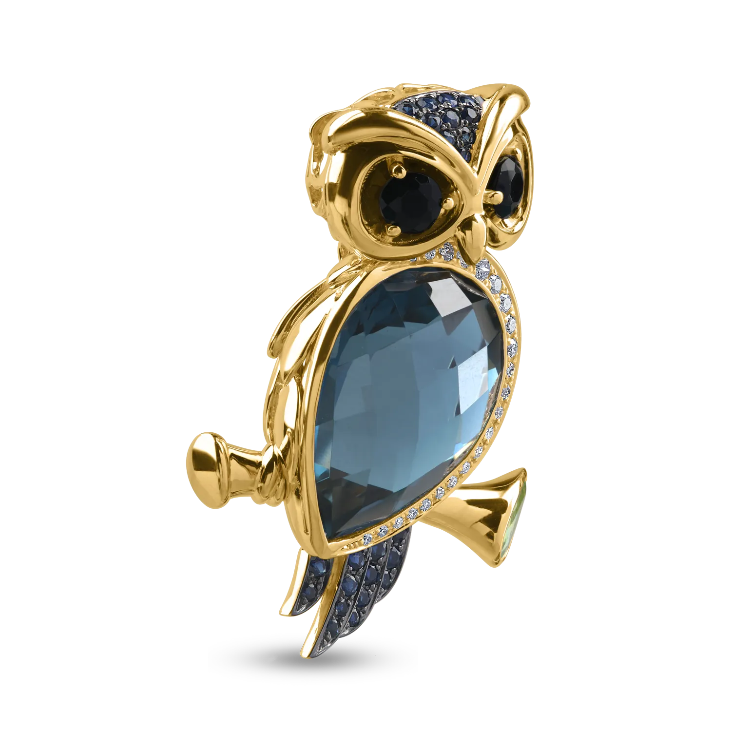 Exprima-ti personalitatea prin bijuteriile pe care le porti. Un simbol al intelepciunii si al rafinamentului, pandantivul bufnita din aur galben cu topaz London Blue, onix, granat verde pear, safire si diamante totalizand 11.76ct fascineaza prin designul sau spectaculos si armonia nuantelor pretioase. Fiecare piatra adauga profunzime si caracter, transformand bijuteria intr-o creatie ce vorbeste despre curajul de a iesi in evidenta si despre frumusetea expresiei personale. O piesa statement, plina de energie si stil. TEILOR te transpune intr-o lume a descoperirii de sine ce te va fascina!