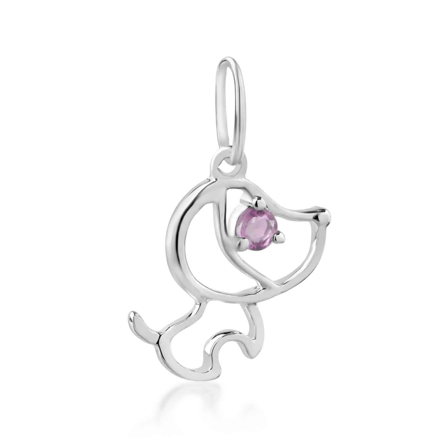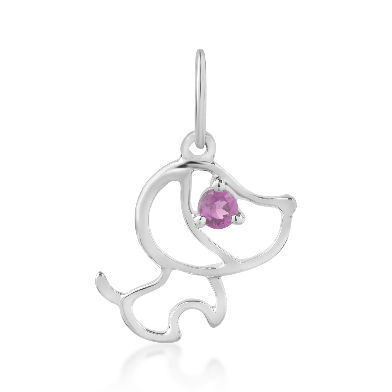 Pandantiv catelus pentru copii din aur alb cu safir roz de 0.05ct