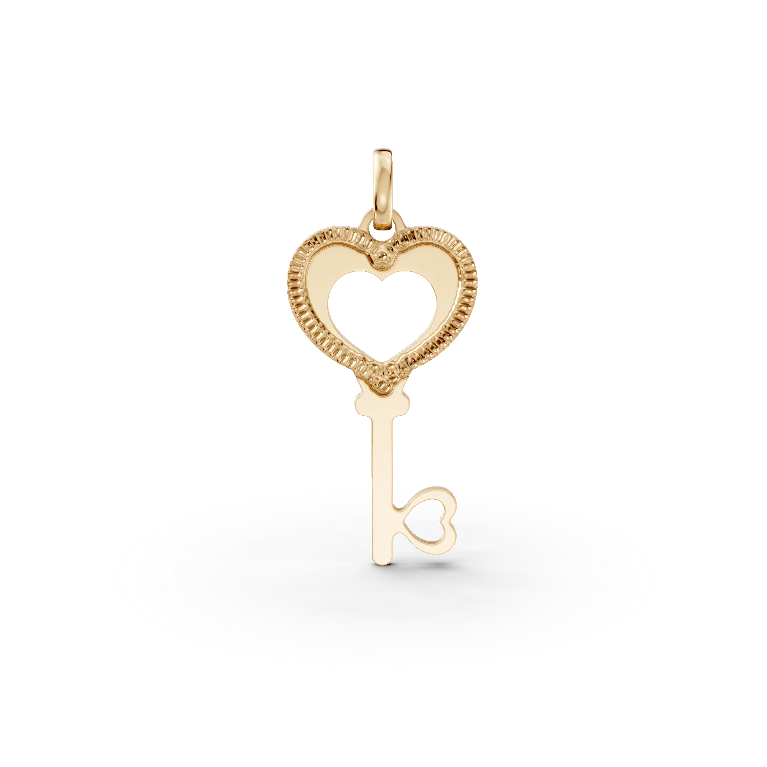 Poarta bijuteriile ce iti reflecta frumusetea interioara. Minimalist dar modern, pandantivul cheita si inimioare din aur galben va oferi pretiozitate chiar si celor mai simple tinute. Exprima-ti personalitatea cu bijuteriile tale preferate din colectia TEILOR.