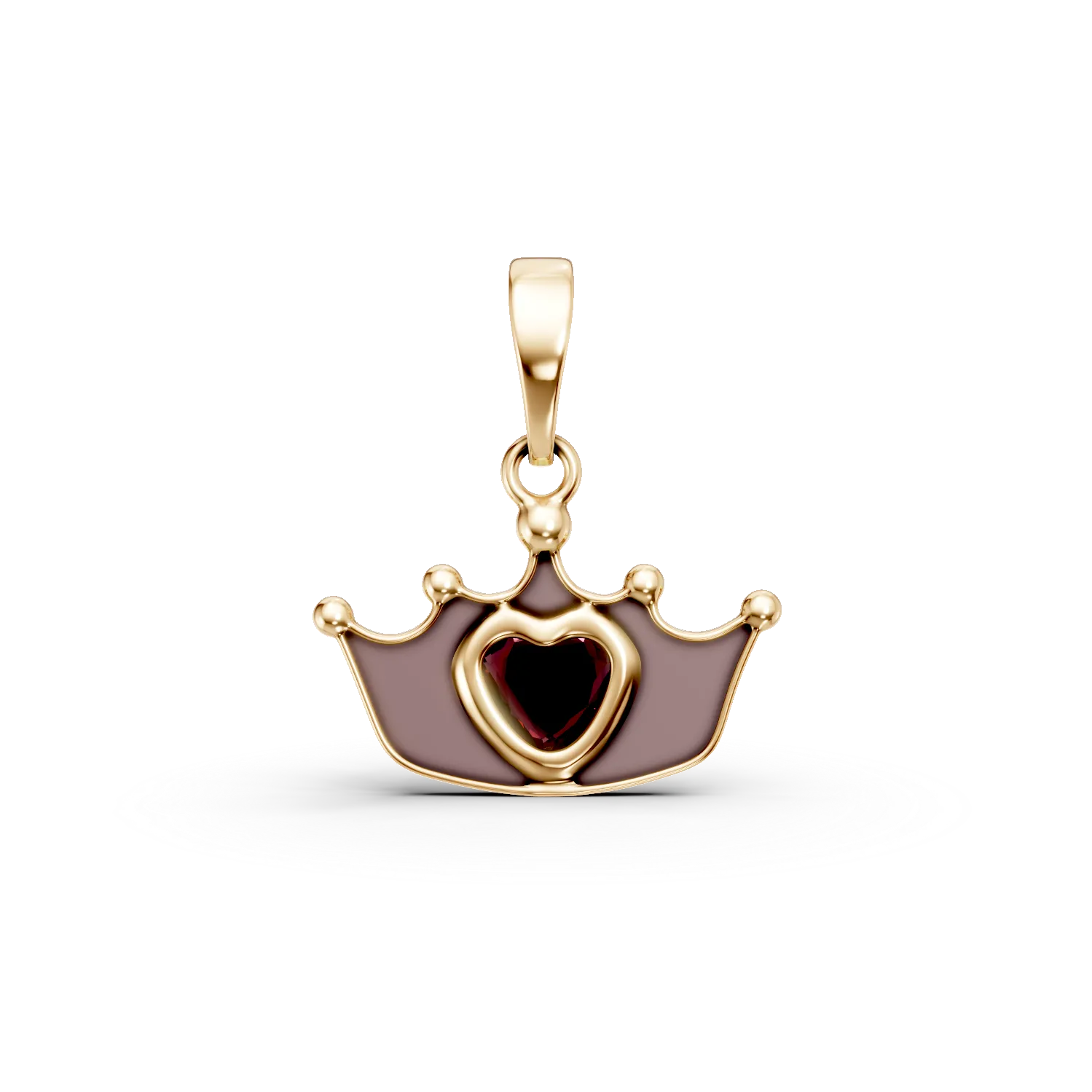 Pandantiv coroana din aur galben cu granat heart de 0.1ct pentru copii