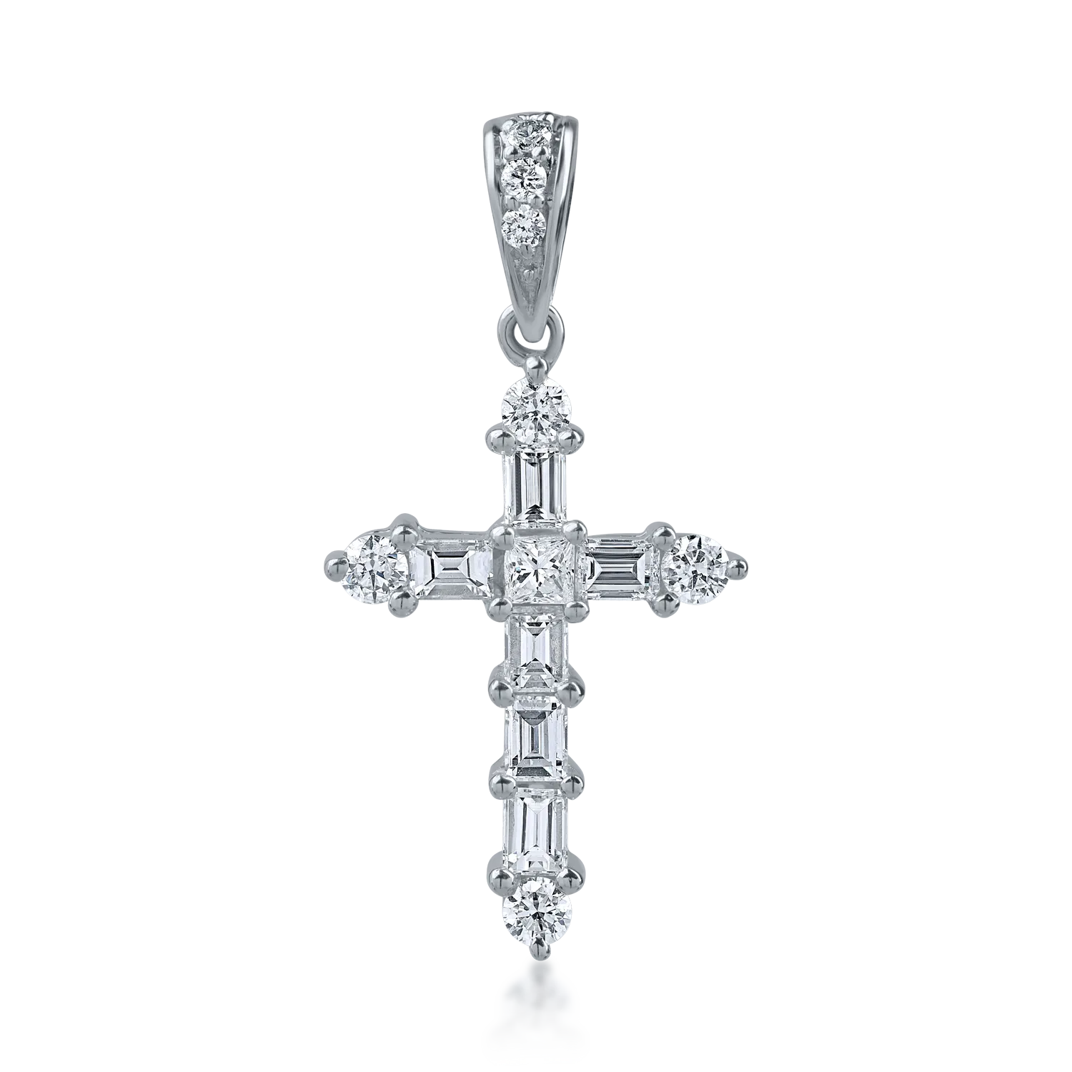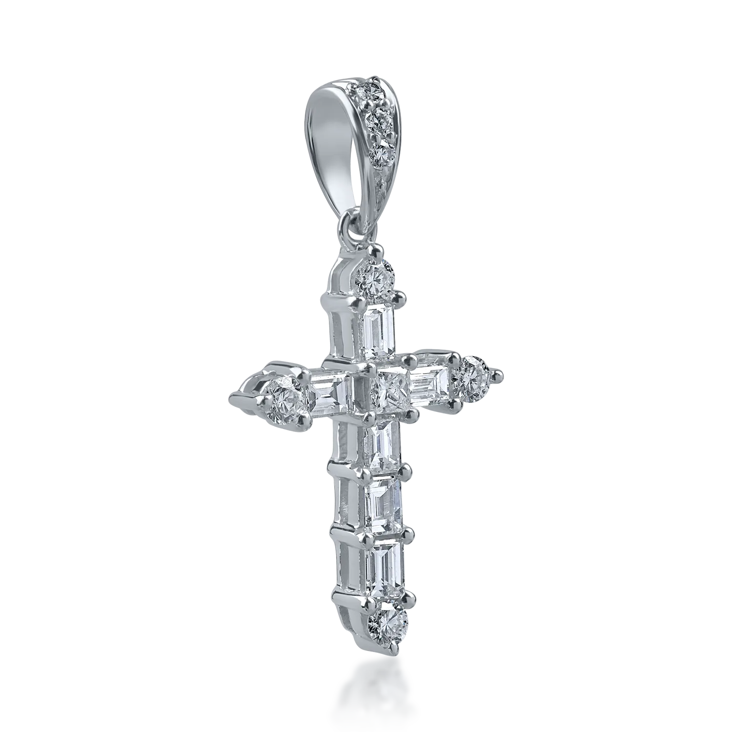 Pandantiv cruce din aur alb cu diamante baguette, princess si rotunde de 0.4ct