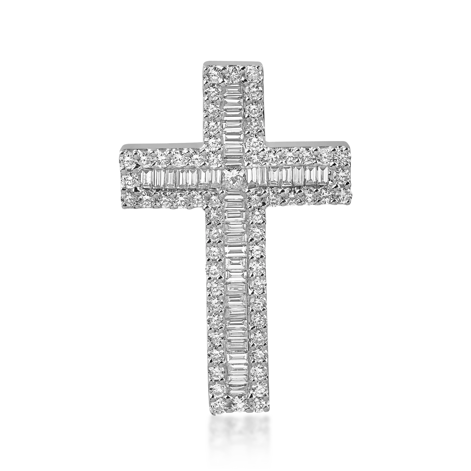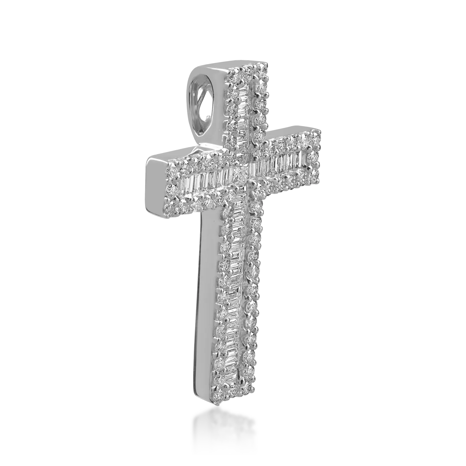 Pandantiv cruce din aur alb cu diamante baguette, princess si rotunde de 1.2ct