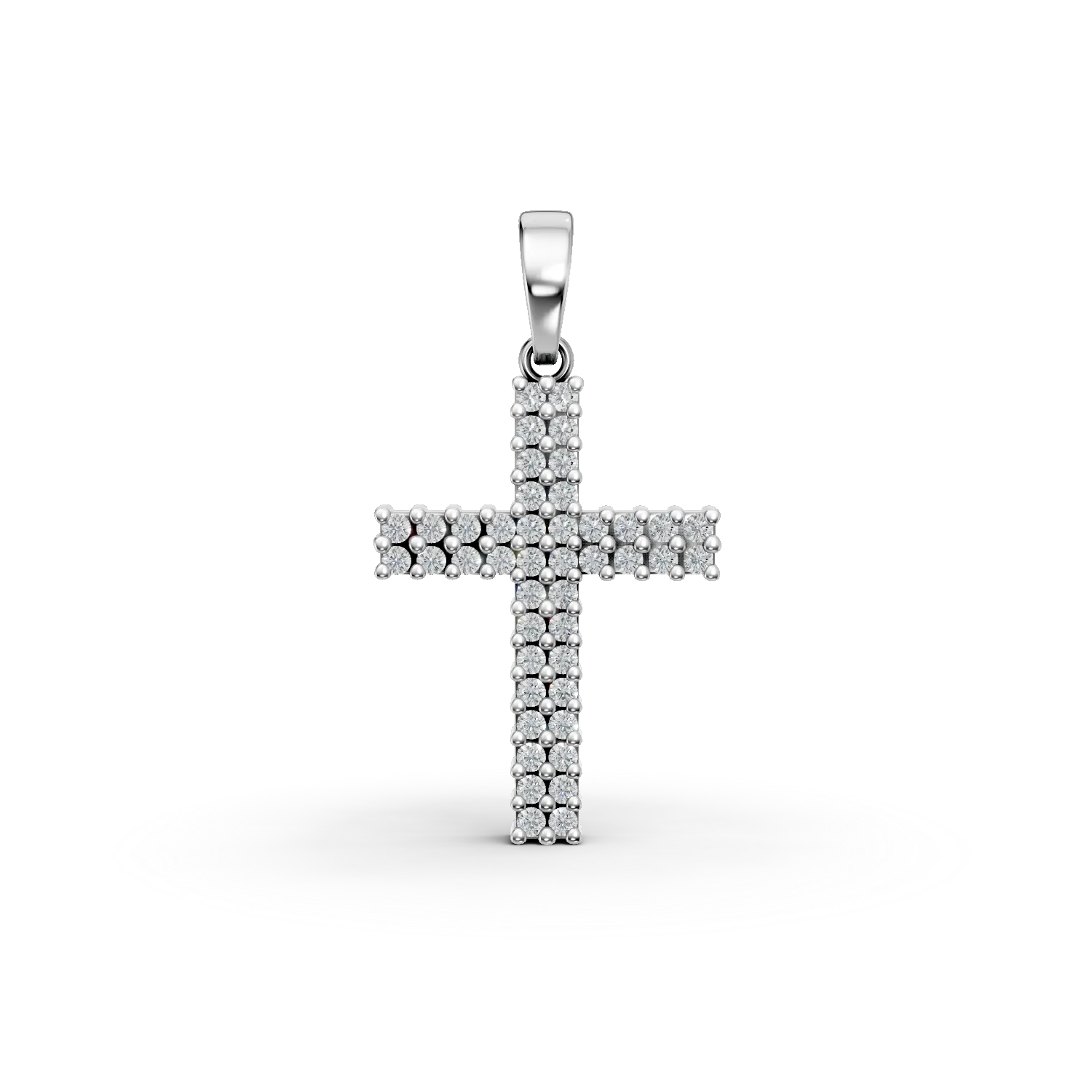 Pandantiv cruce din aur alb cu zirconia microsetting