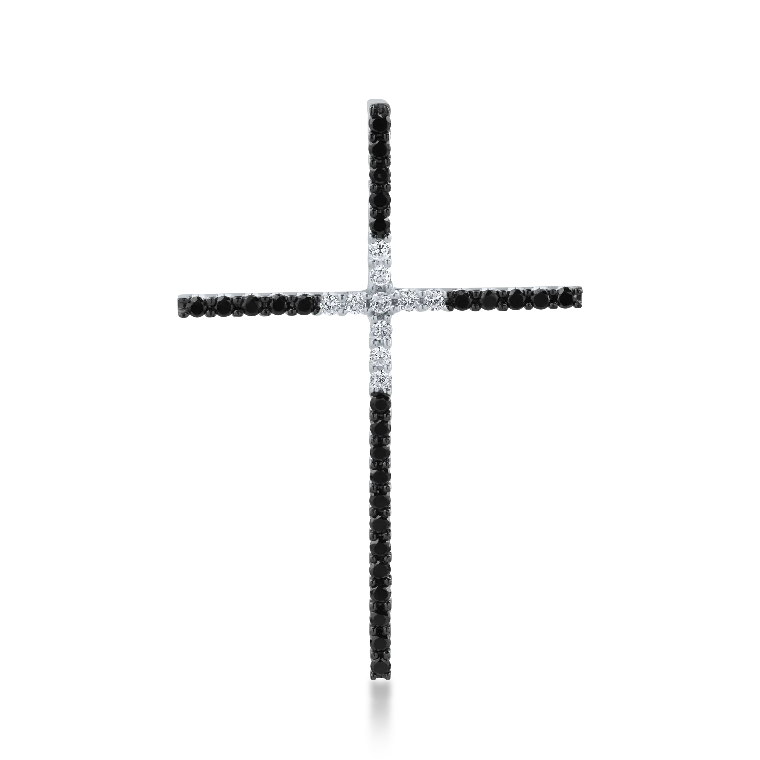 Pandantiv cruce din aur alb-negru cu diamante negre si incolore de 0.5ct