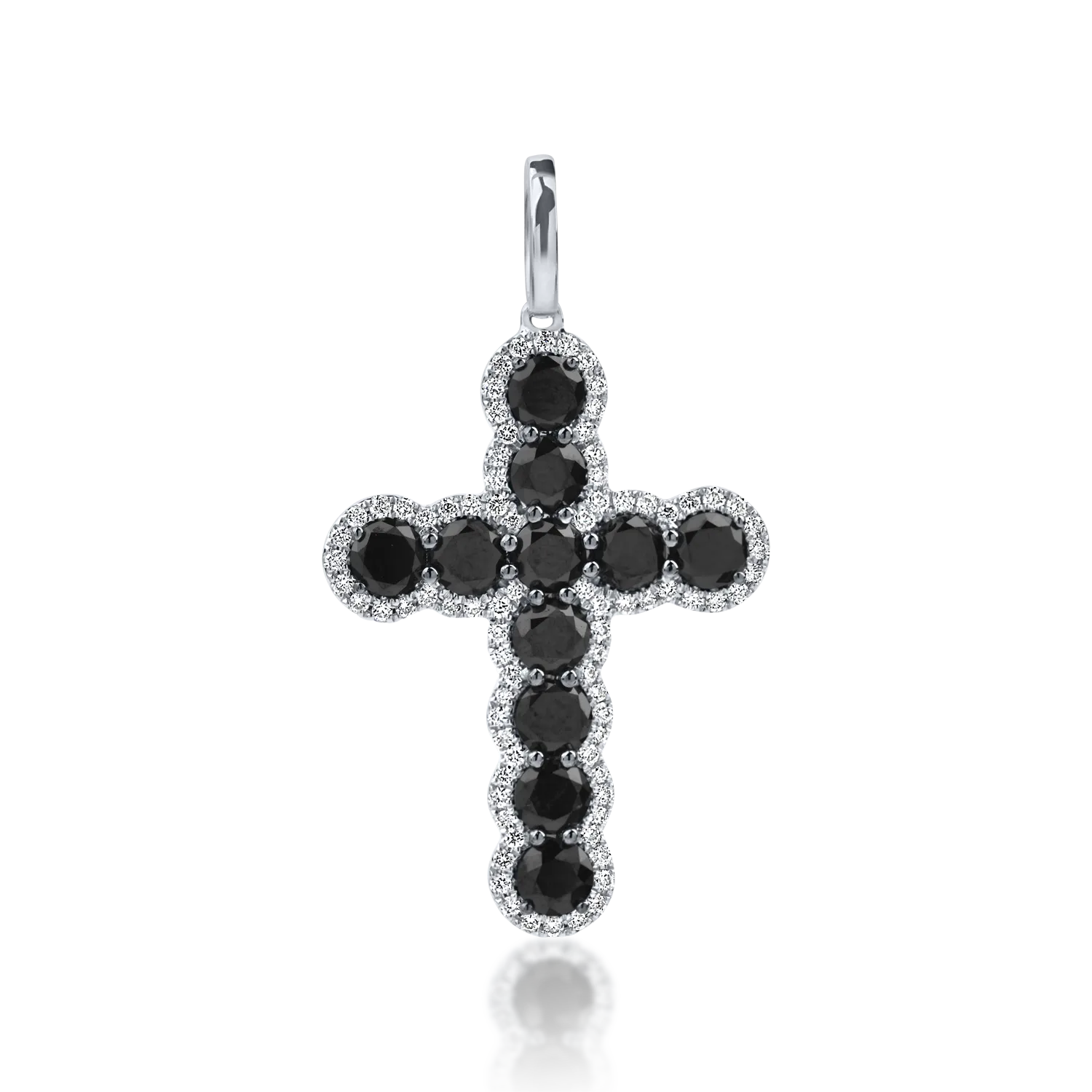 Pandantiv cruce din aur alb-negru cu diamante negre si incolore de 2ct