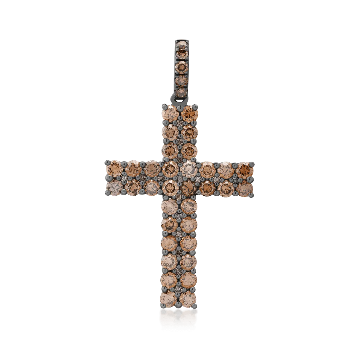 Pandantiv cruce din aur negru cu diamante maro de 1.85ct