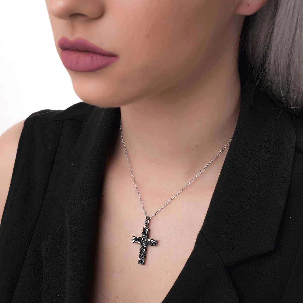 Pandantiv cruce din aur negru cu diamante negre de 1.93ct