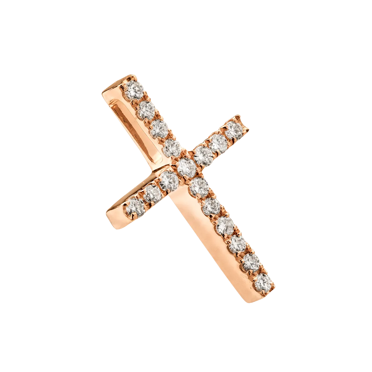 Pandantiv cruce din aur roz cu diamante de 0.083ct