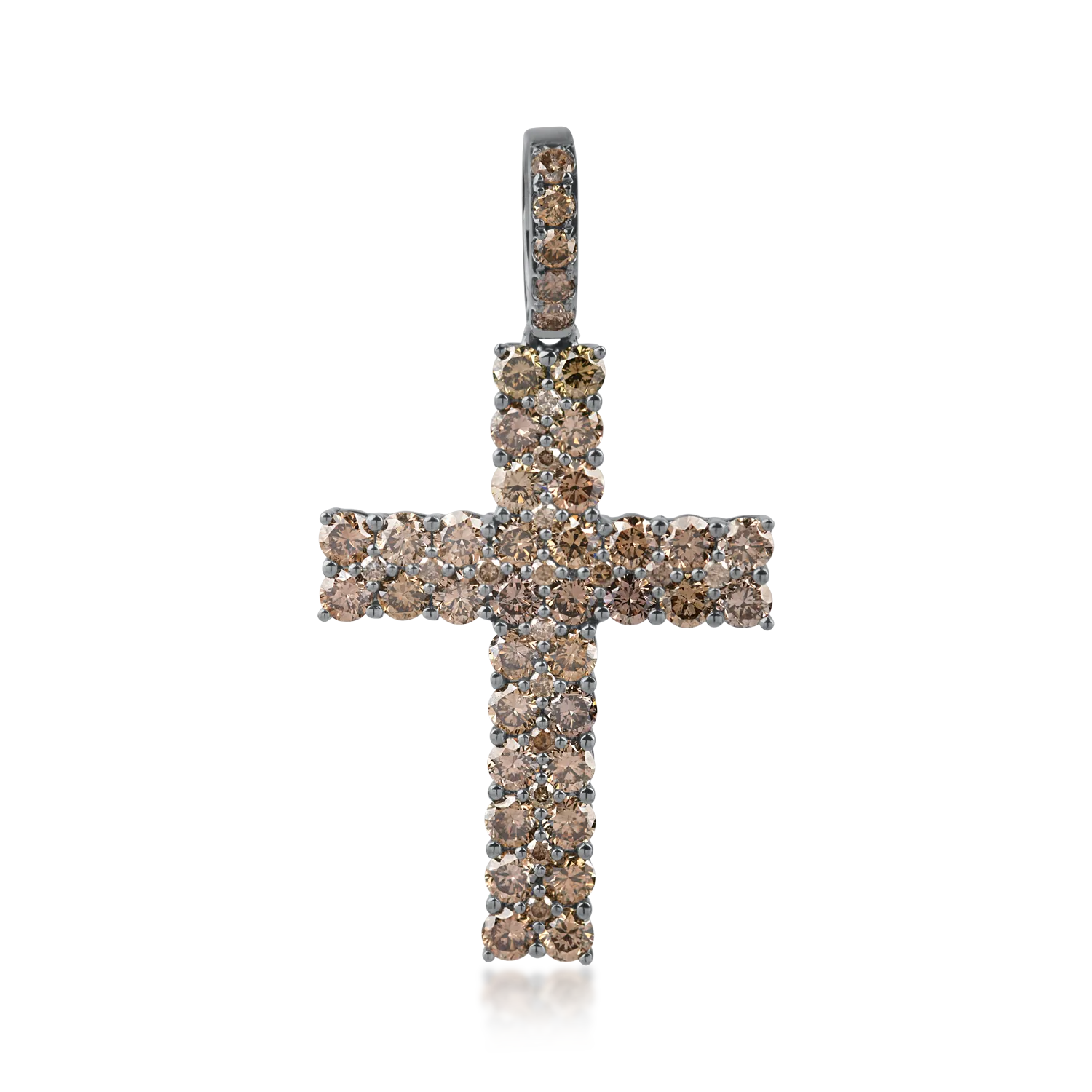 Pandantiv cruce din aur roz cu diamante maro de 1.4ct