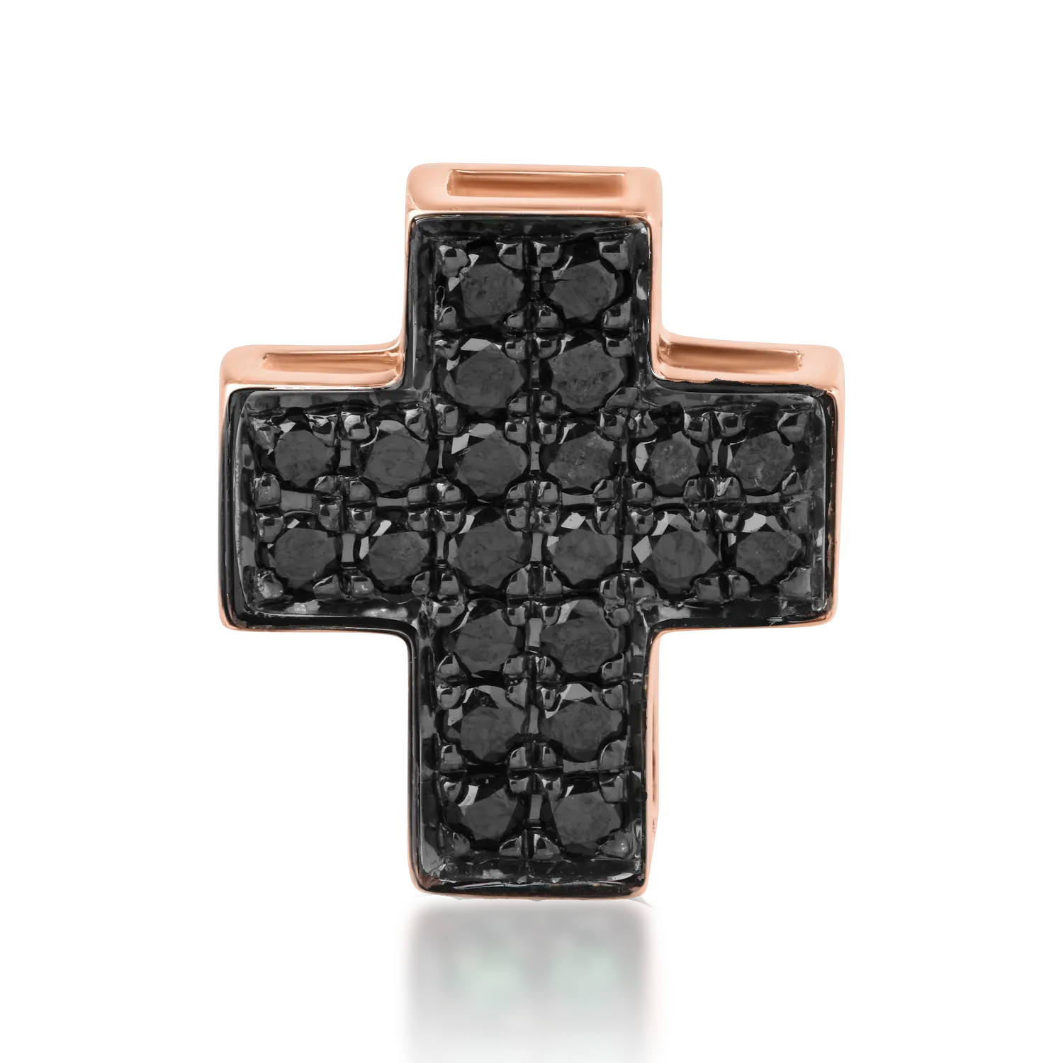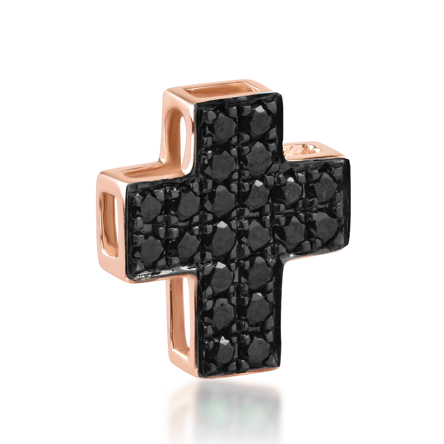 Pandantiv cruce din aur roz cu diamante negre de 0.2ct
