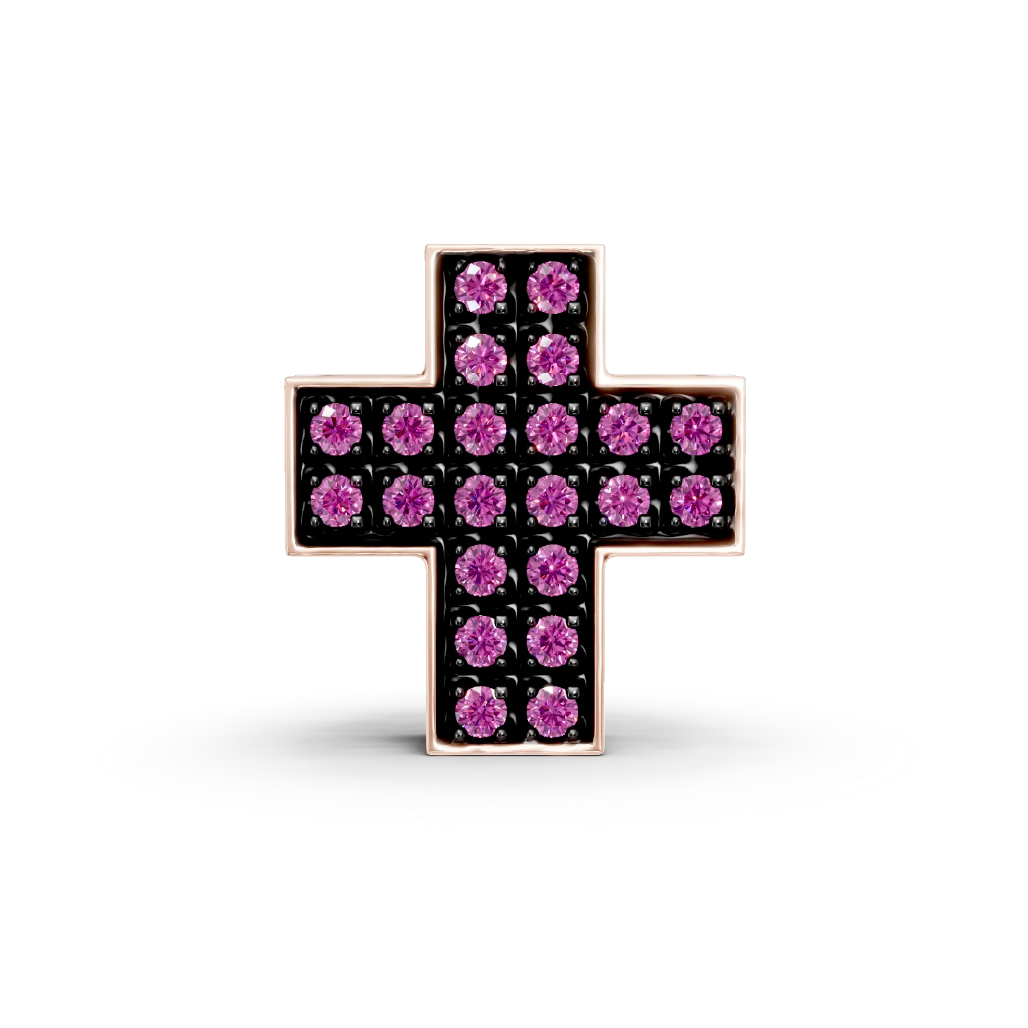 Pandantiv cruce din aur roz cu rubine de 0.15ct