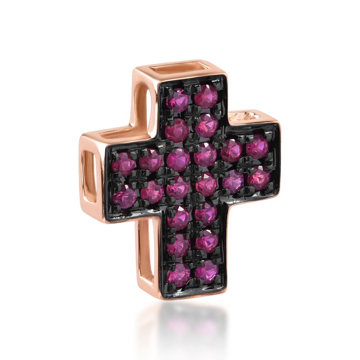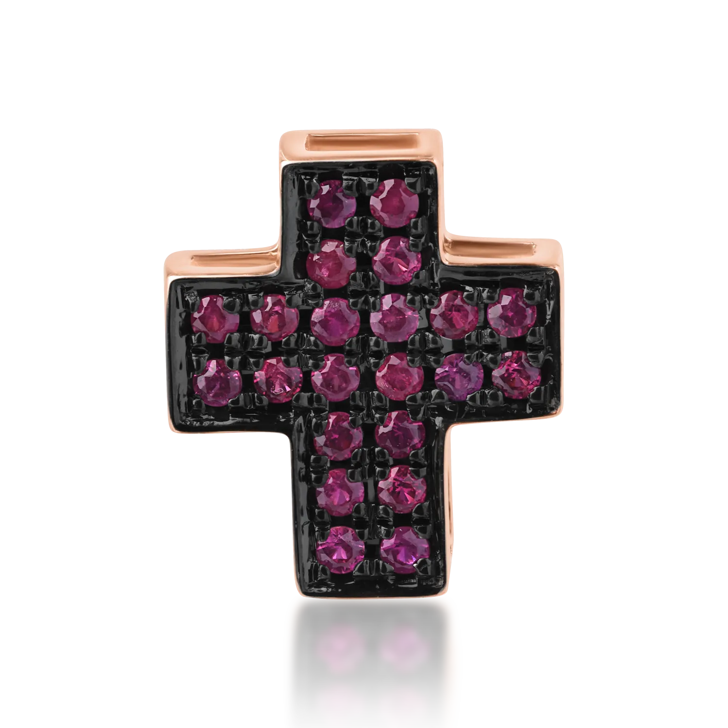 Pandantiv cruce din aur roz cu rubine de 0.22ct