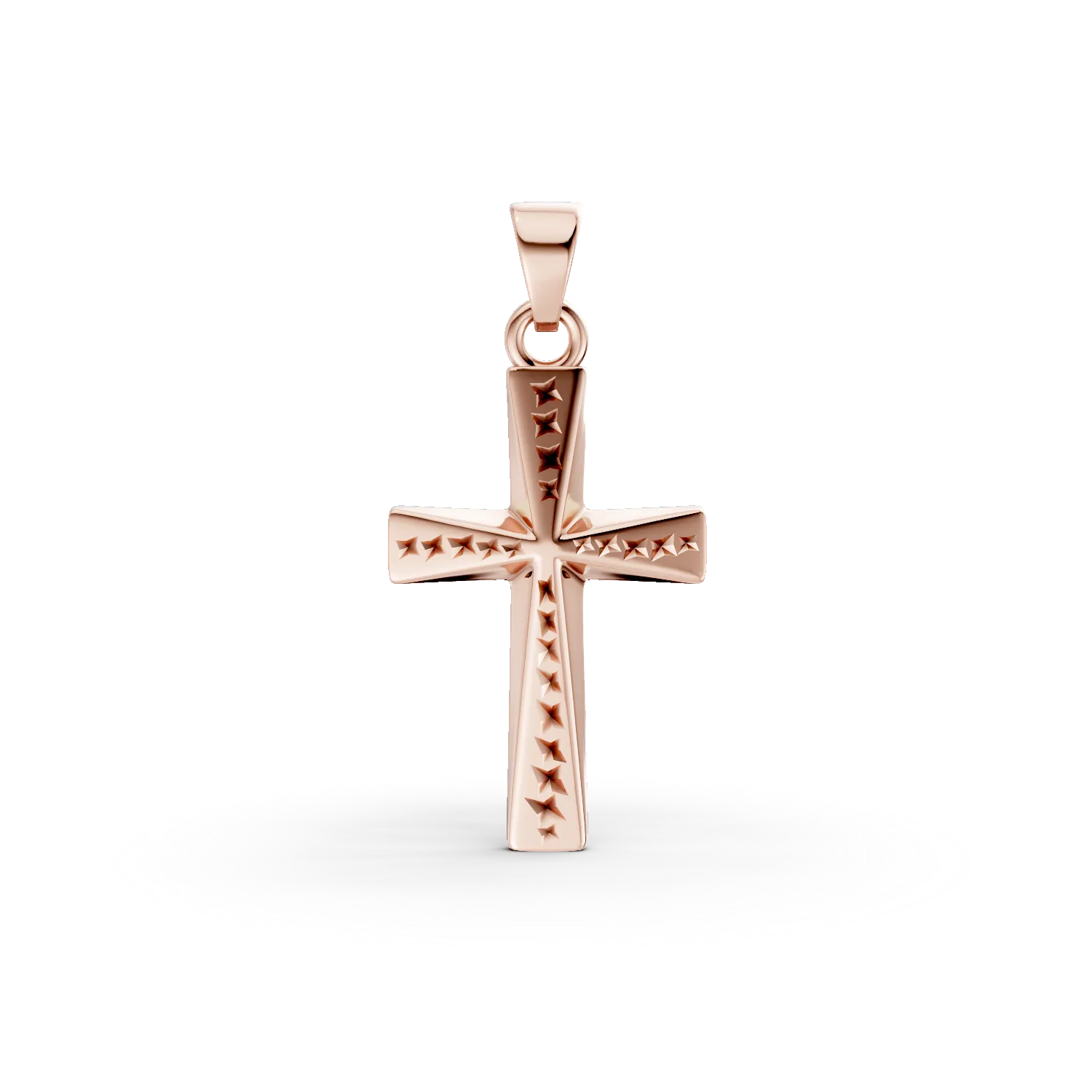 Descopera simplitatea acestui pandantiv cruce din aur roz. Un design clasic, ce poate fi purtat indiferent de tinuta. Exprima-ti personalitatea cu bijuteriile tale preferate din colectia TEILOR.