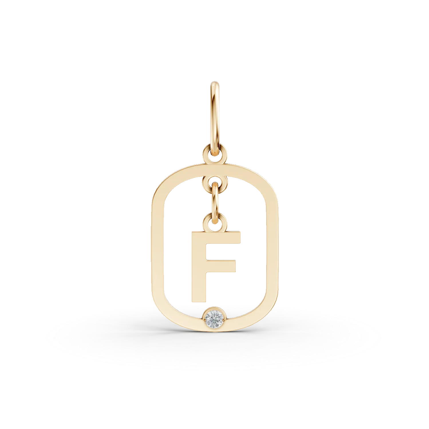 Pandantiv cu initiala F din aur galben cu diamant de 0.005