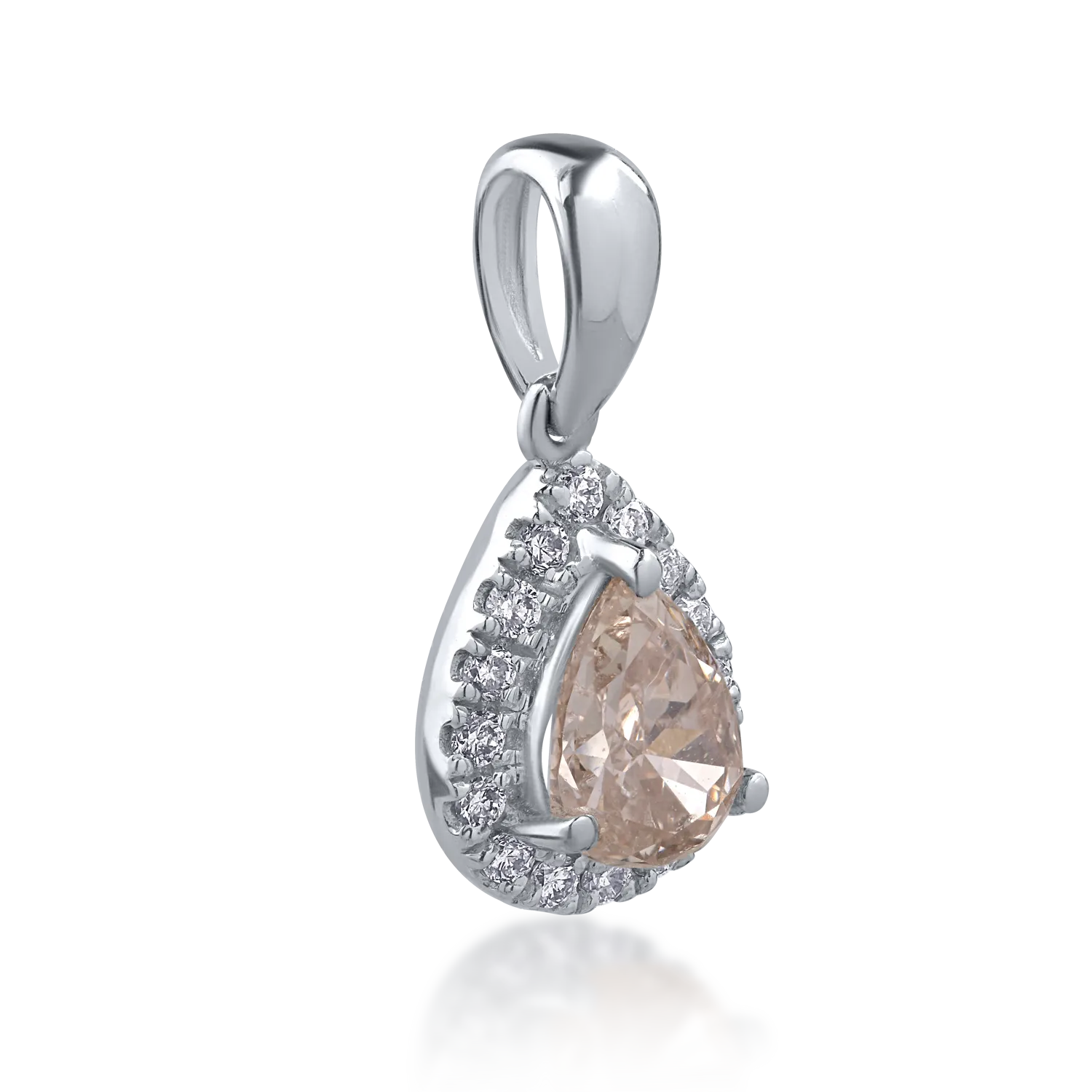 Pandantiv din aur alb cu diamant galben pear de 0.61ct si diamante transparente de 0.12ct