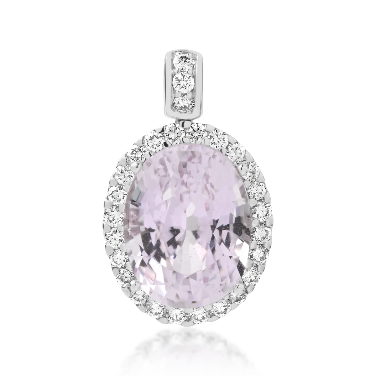 Pandantiv din aur alb cu kunzit oval de 6.21ct si diamante de 0.44ct