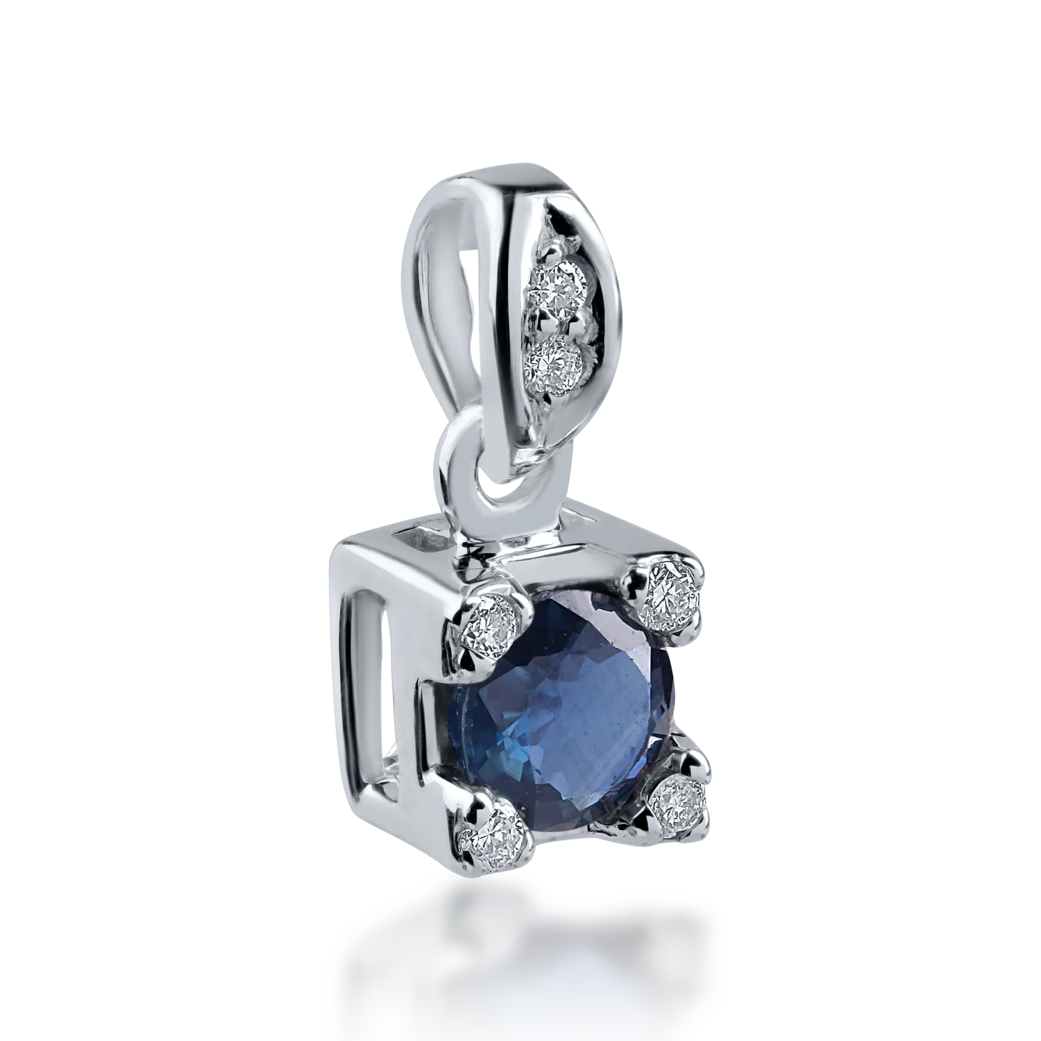 Pandantiv din aur alb cu safir de 0.3ct si diamante de 0.04ct