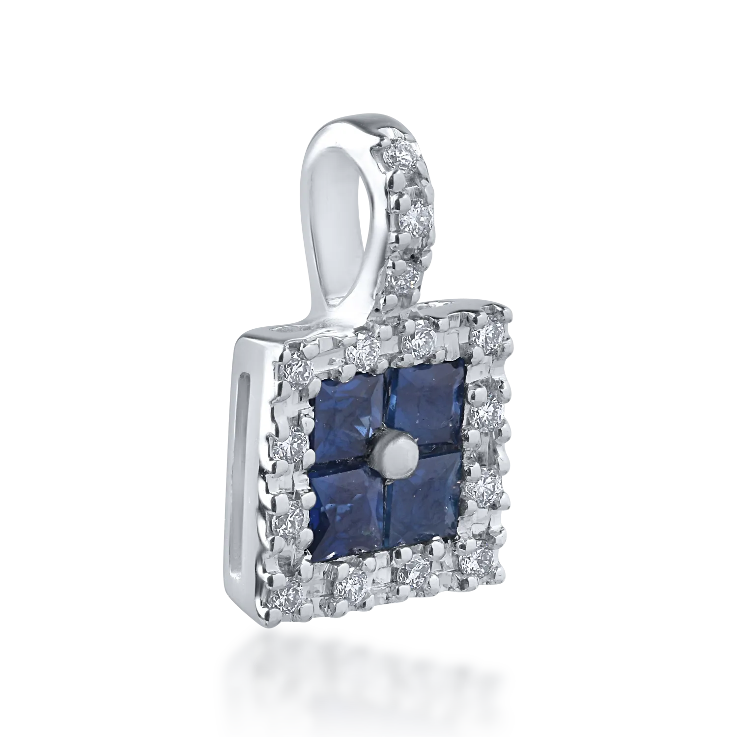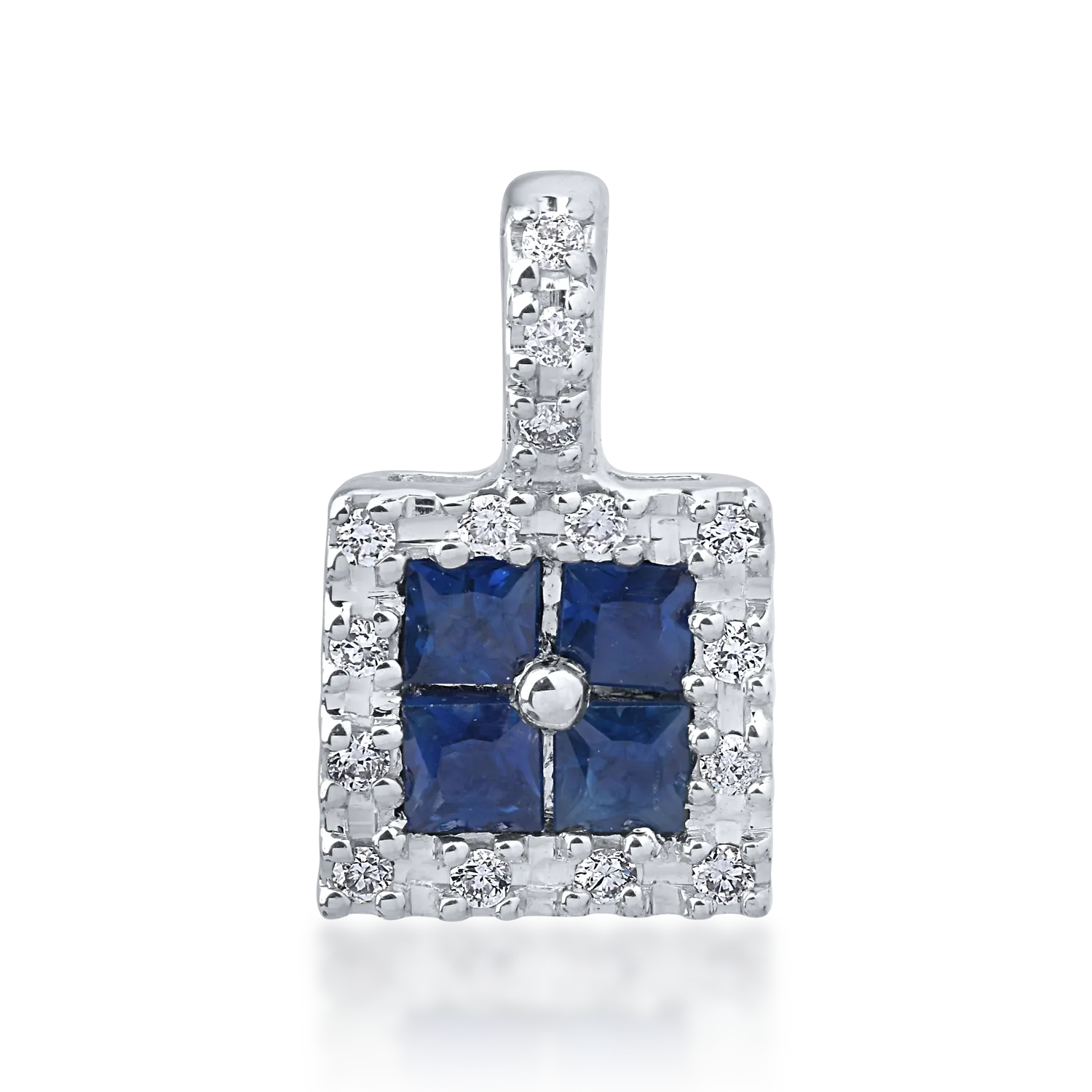 Pandantiv din aur alb cu safire square de 0.24ct si diamante de 0.06ct