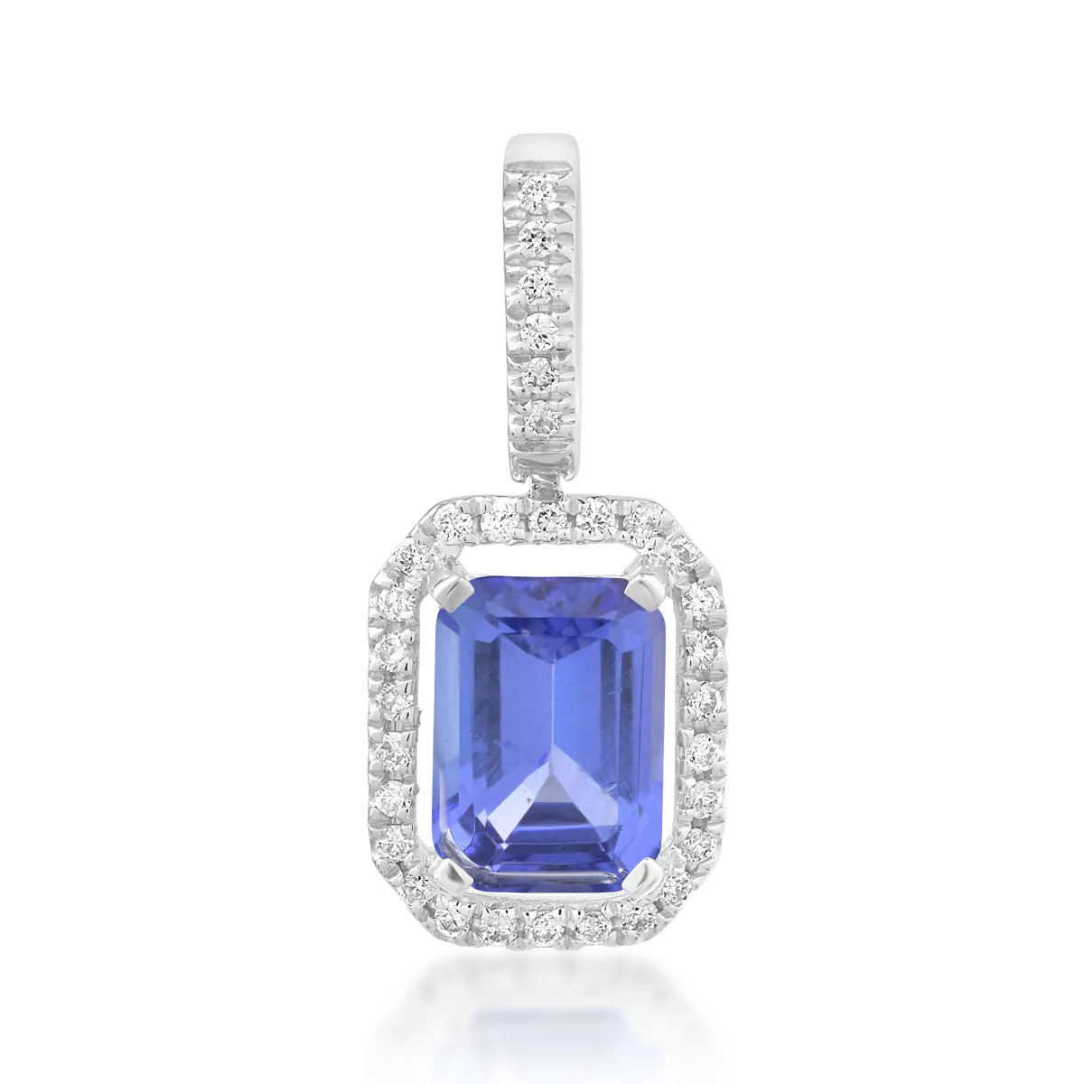 Pandantiv din aur alb cu tanzanit octogonal de 1.14ct si diamante de 0.095ct