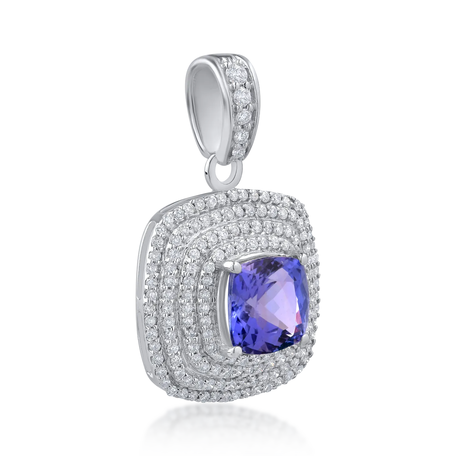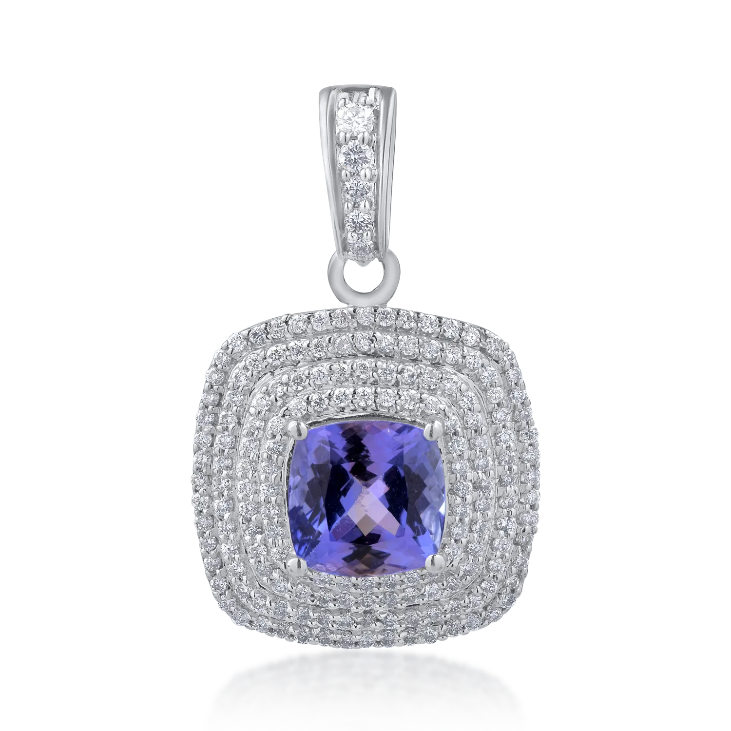 Pandantiv din aur alb cu tanzanit oval de 2.49ct si diamante de 0.66ct