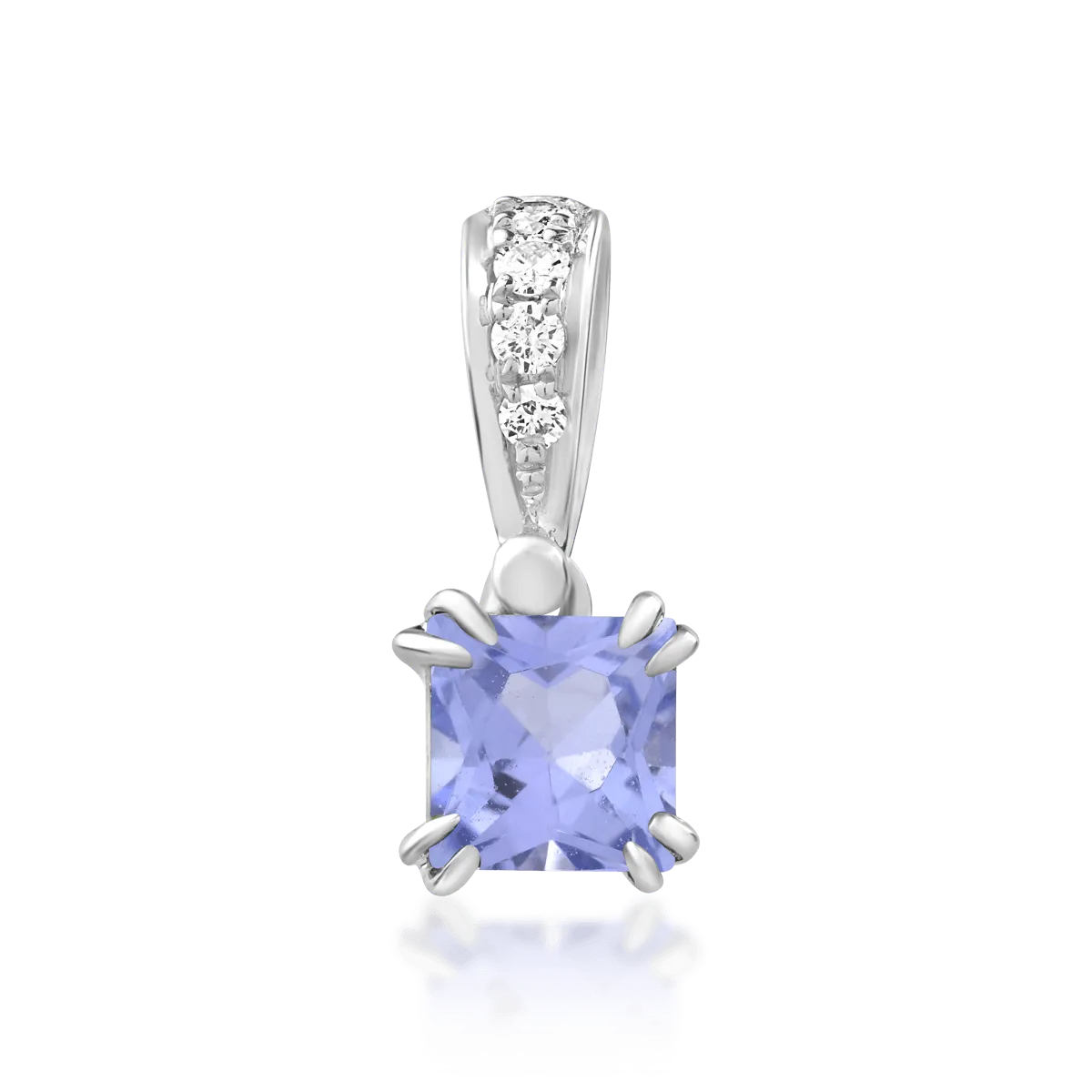 Pandantiv din aur alb cu tanzanit princess de 0.39ct si diamante de 0.04ct