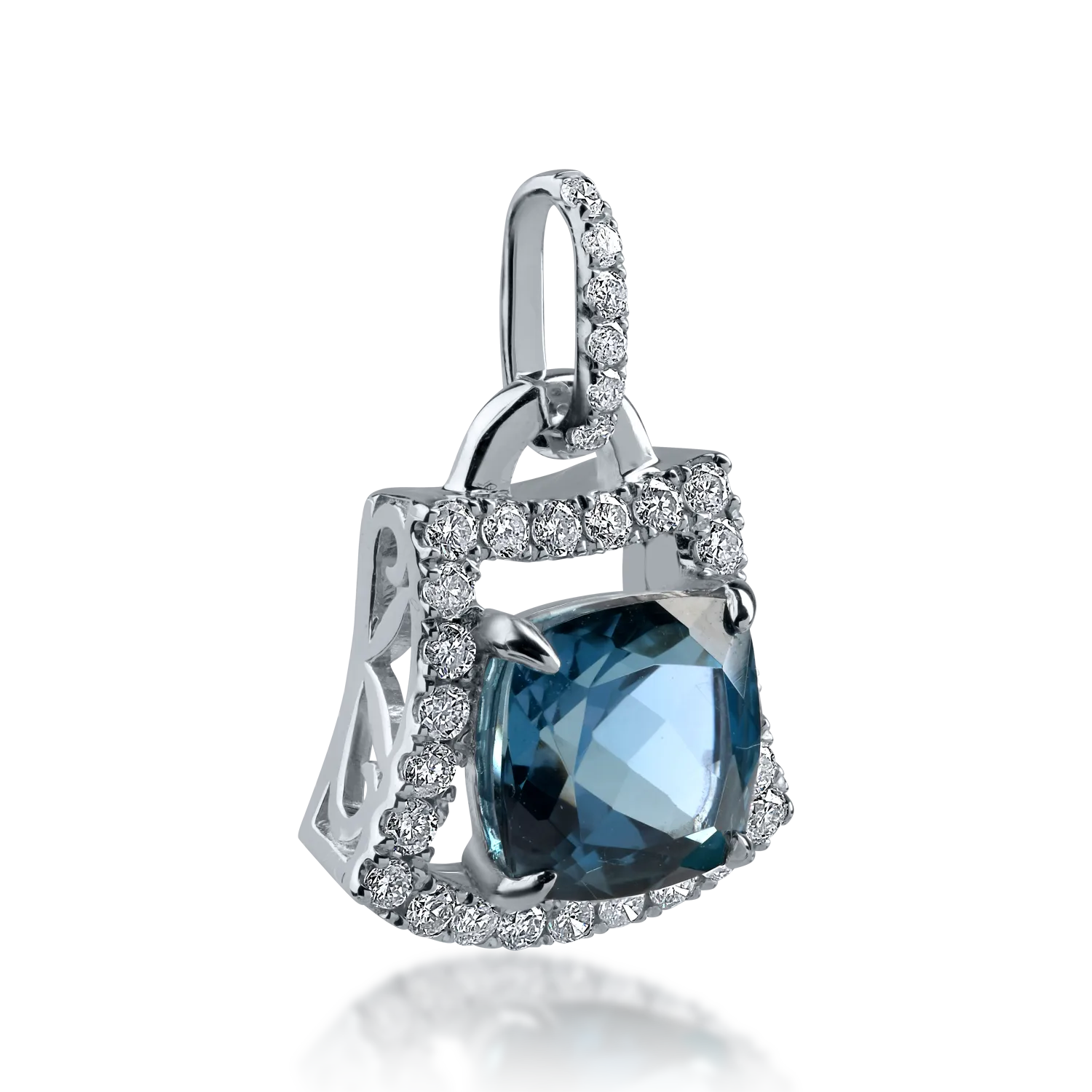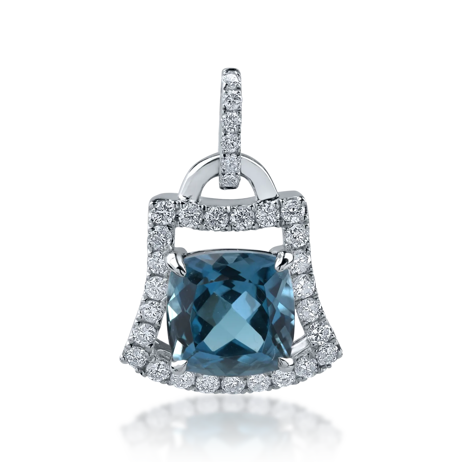 Pandantiv din aur alb cu topaz london blue square de 1.905ct si diamante de 0.239ct