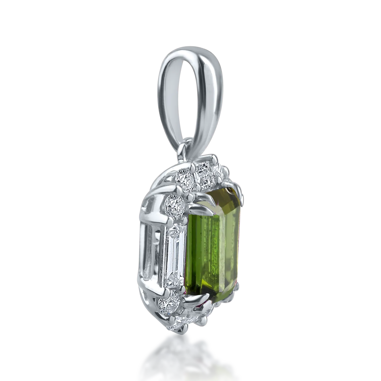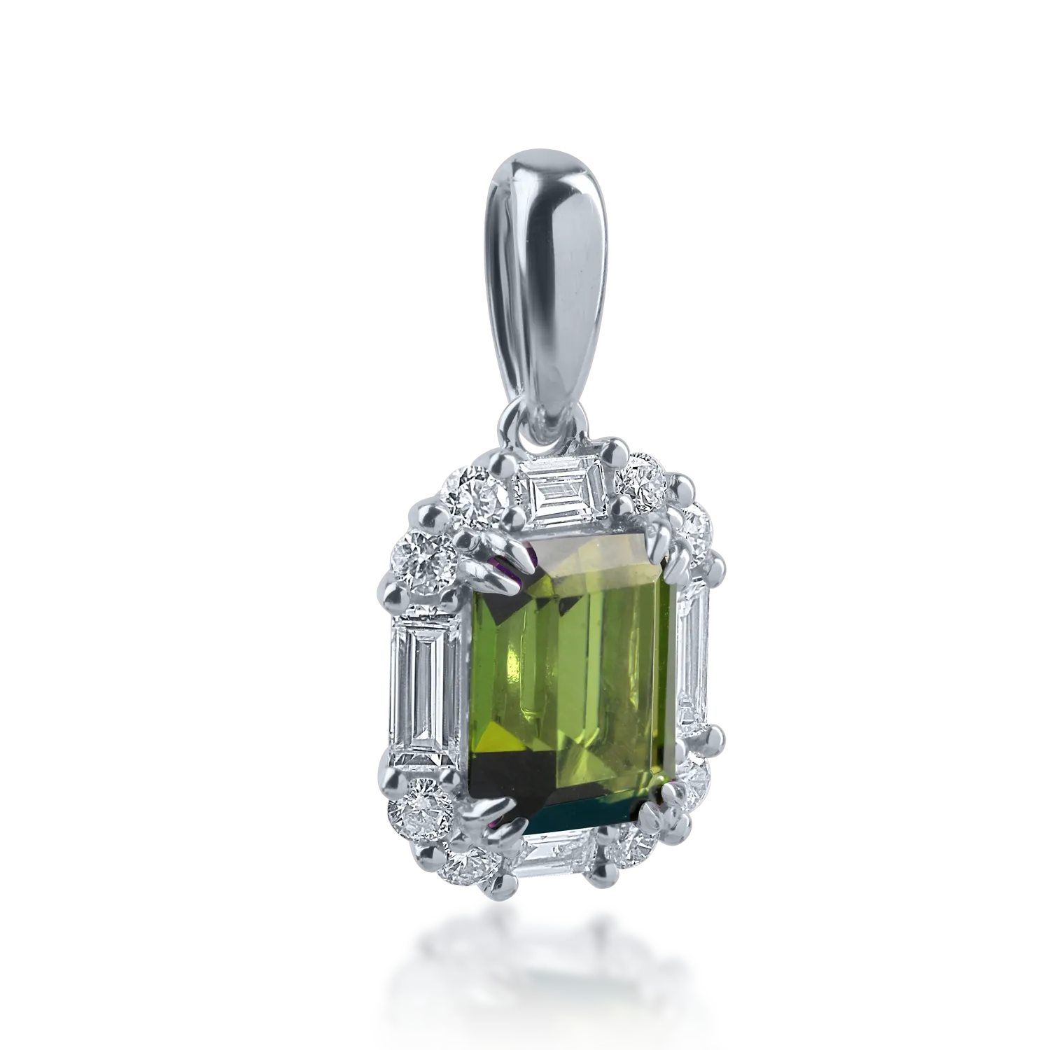 Pandantiv din aur alb cu turmalina verde de 1.03ct si diamante baguette si rotunde de 0.35ct