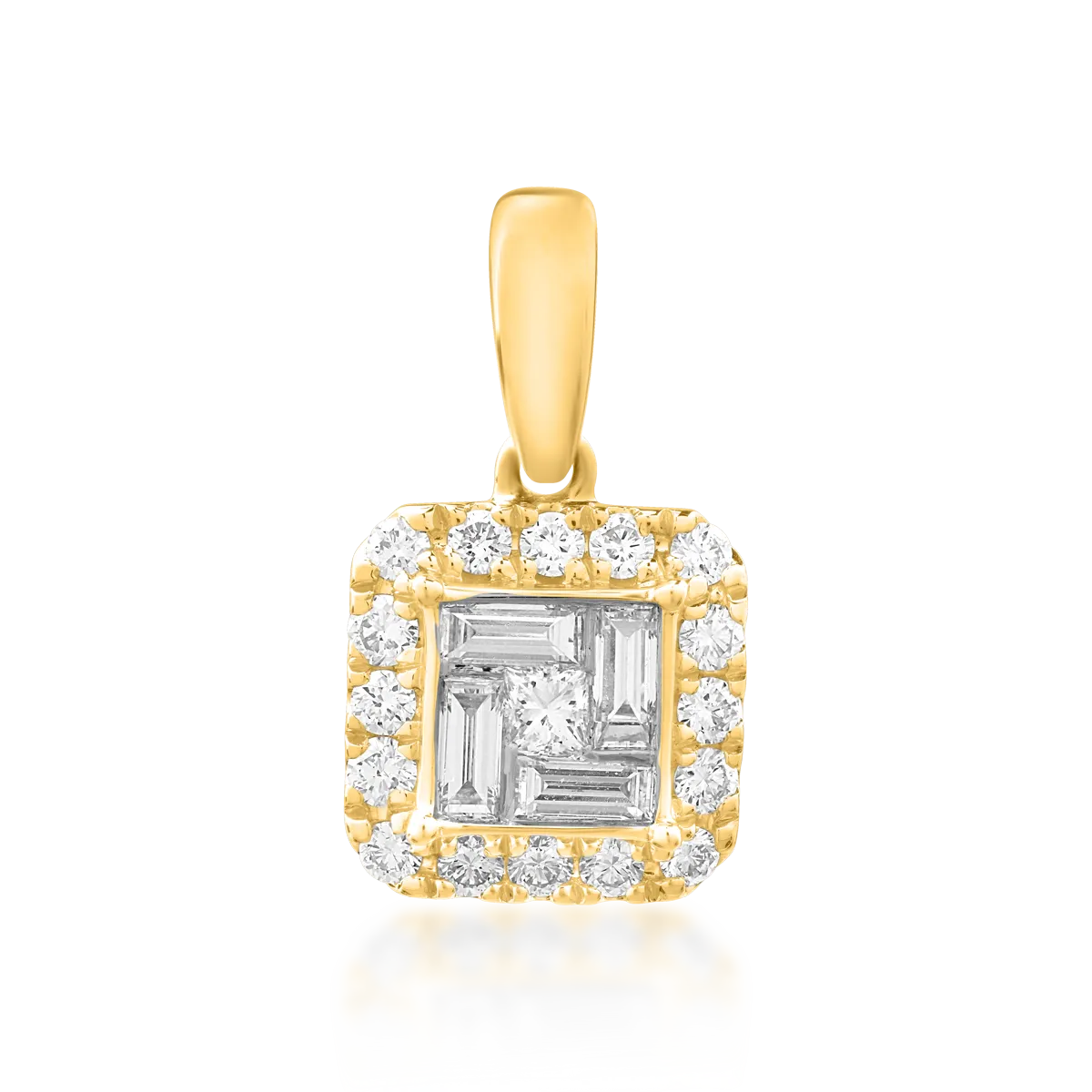 Pandantiv din aur galben cu diamante princess, baguette si rotunde de 0.4ct