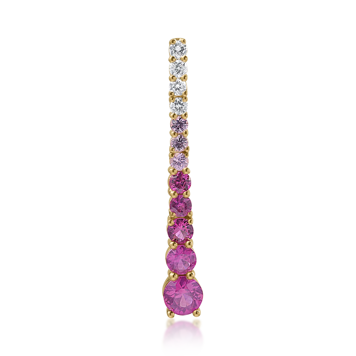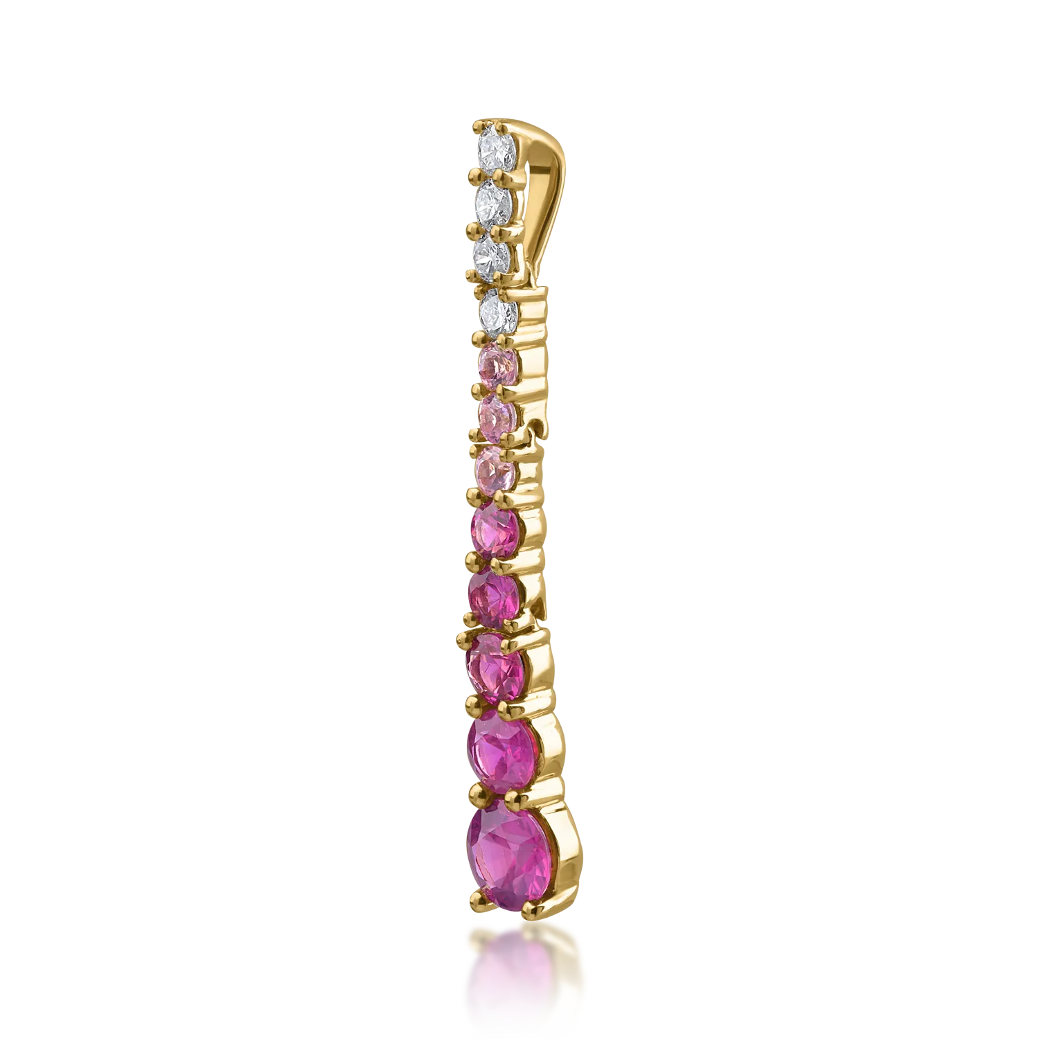Poarta bijuteriile ce iti reflecta frumusetea interioara si lasa-le sa vorbeasca despre tine. Stralucirea calda a aurului galben si rafinamentul pietrelor pretioase transforma acest pandantiv cu diamante, rubine si safire roz de 1.29ct intr-o piesa emblematica a feminitatii moderne. Contrastul delicat dintre tonurile intense ale rubinelor, nuantele blande ale safirelor roz si lumina pura a diamantelor creeaza o armonie vizuala aparte. Fie ca il porti zi de zi sau la o ocazie speciala, acest pandantiv adauga o nota de eleganta naturala si rafinament atemporal. Indrazneste sa fii in centrul atentiei cu bijuteriile TEILOR!
