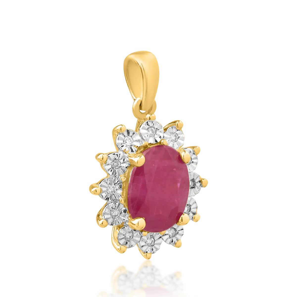 Pandantiv din aur galben cu rubin oval de 1.33ct si diamante de 0.03ct