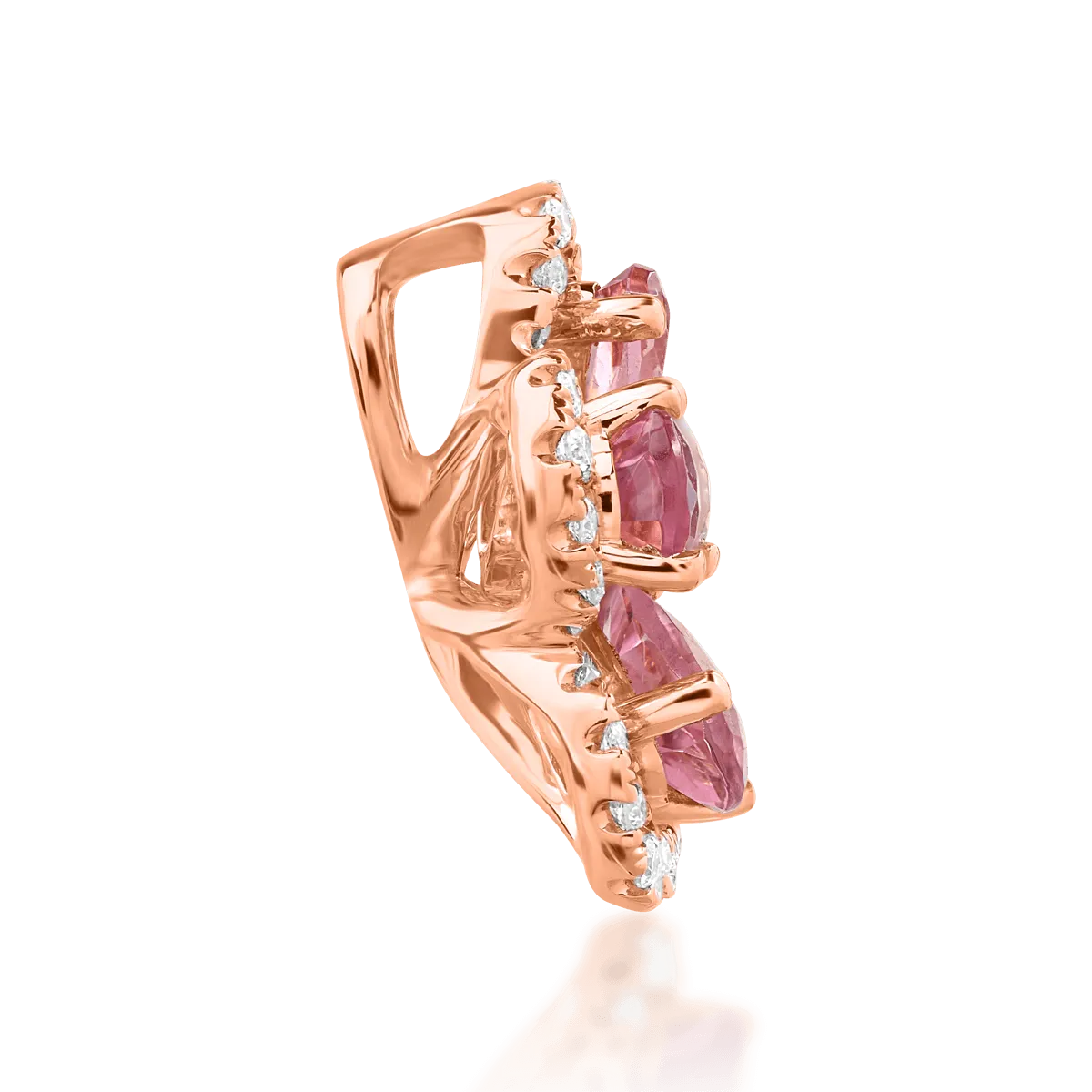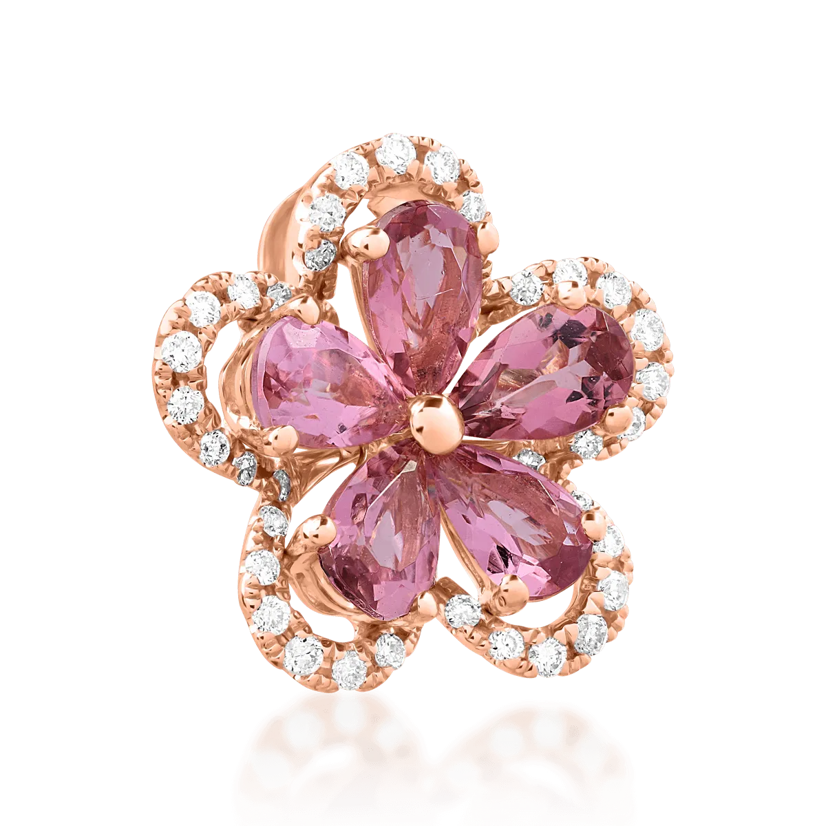 Pandantiv floare din aur roz cu turmaline roz pear de 1ct si diamante de 0.1ct