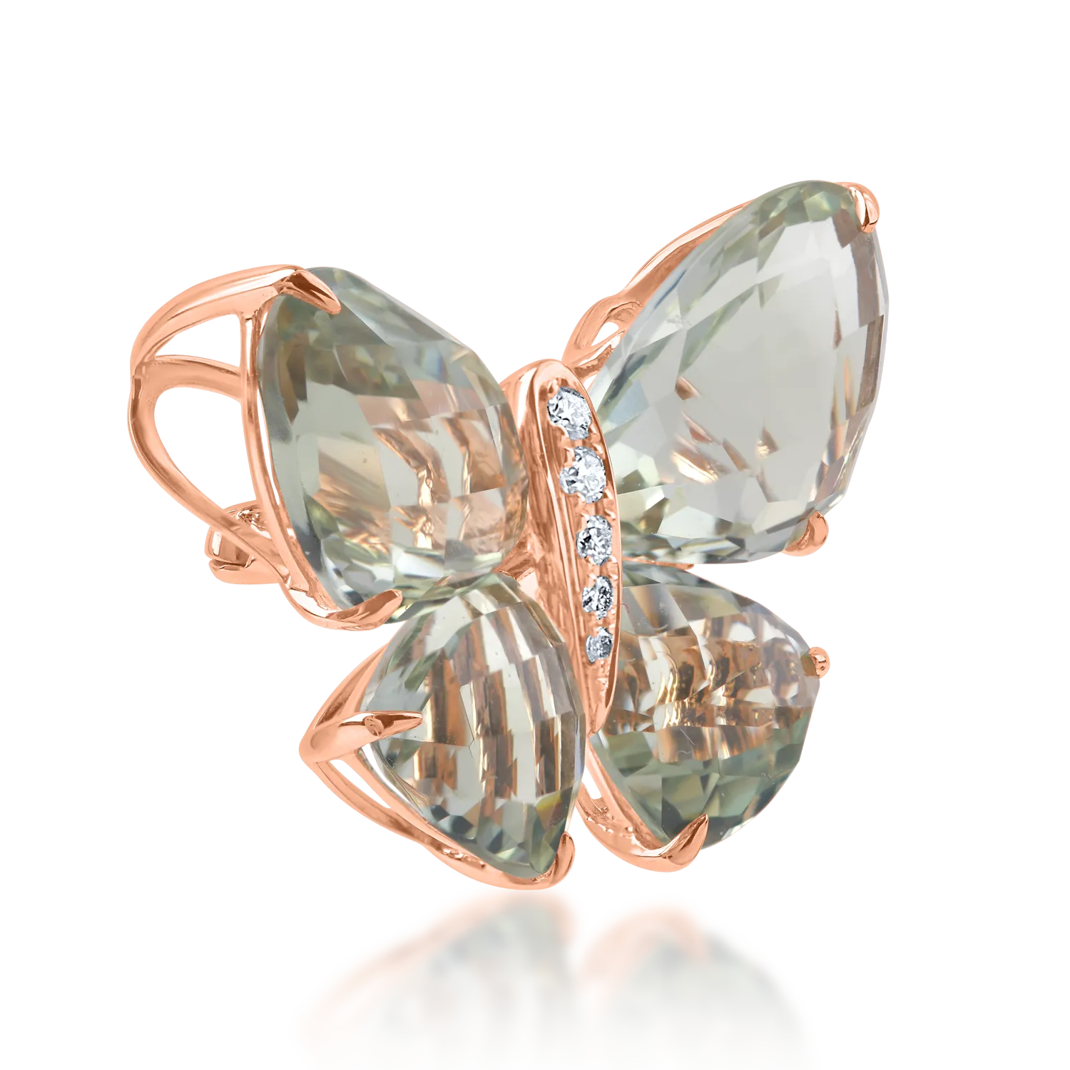 Pandantiv fluture din aur roz cu pietre pretioase si semipretioase de 11.67ct