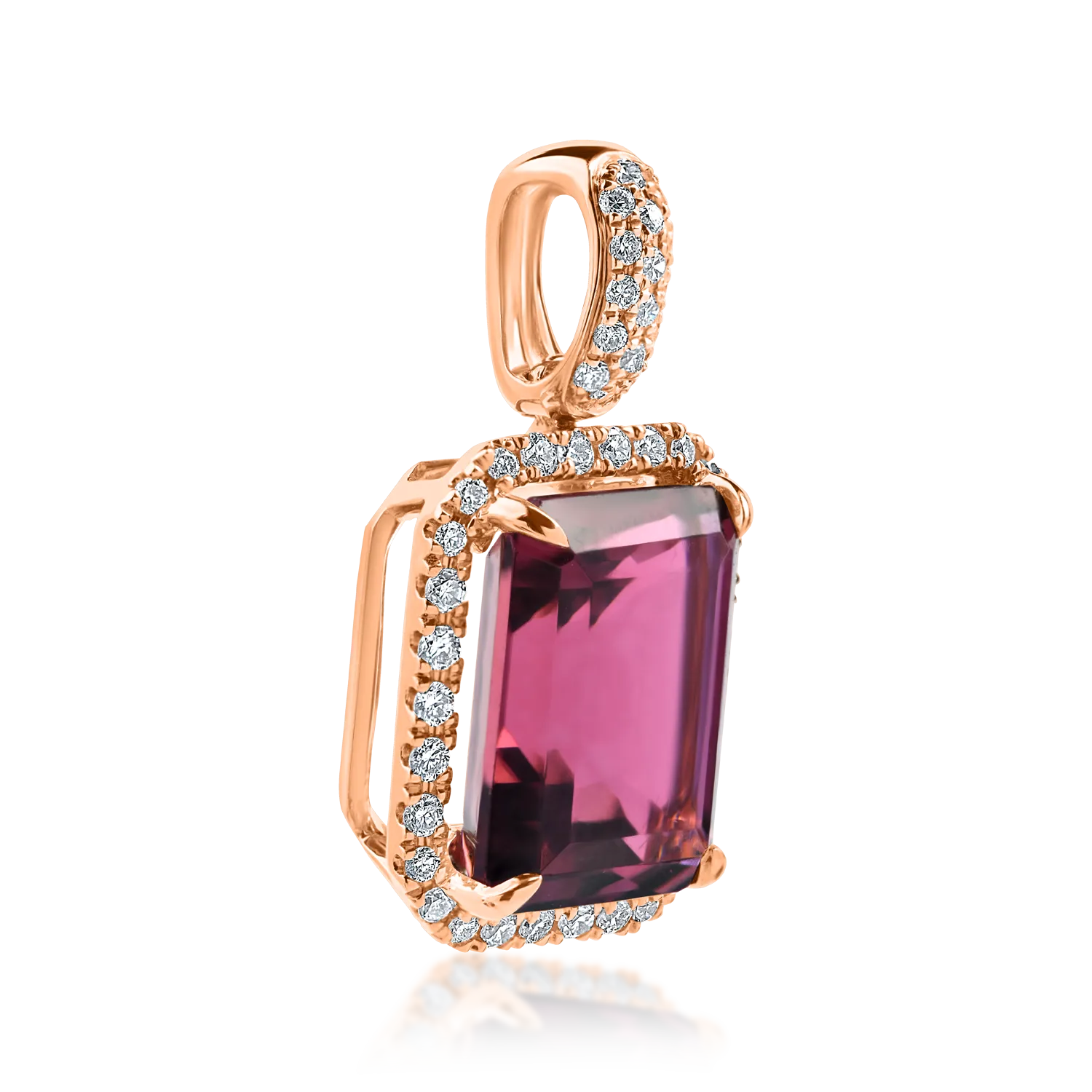 Pandantiv geometric din aur roz cu turmalina roz de 3.2ct si diamante de 0.2ct