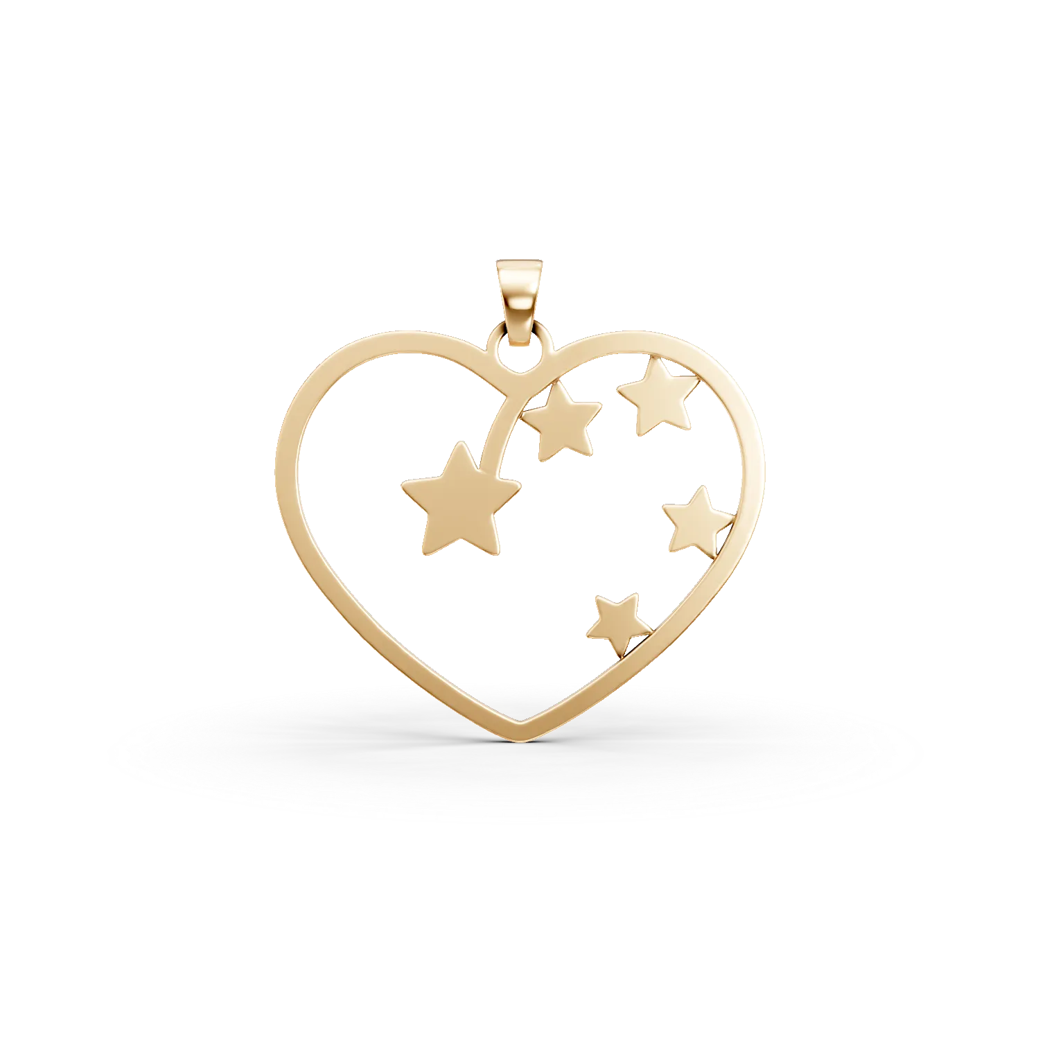 Poarta bijuteriile ce iti reflecta frumusetea interioara.Descopera simplitatea si eleganta acestui pandantiv inima si stelute din aur galben. Un design clasic, ce poate fi purtat indiferent de tinuta, pentru un plus de stralucire. Exprima-ti personalitatea cu bijuteriile tale preferate din colectia TEILOR.