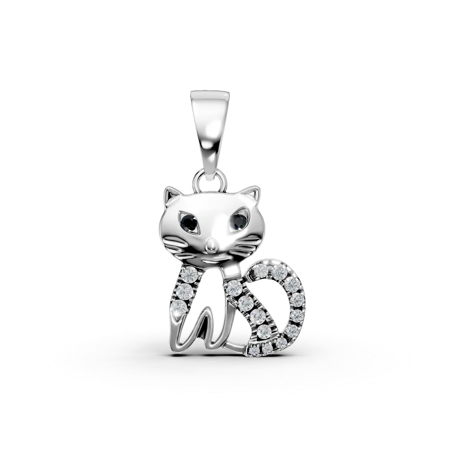 Pandantiv pisica din aur alb cu diamante negre si incolore de 0.05ct pentru copii