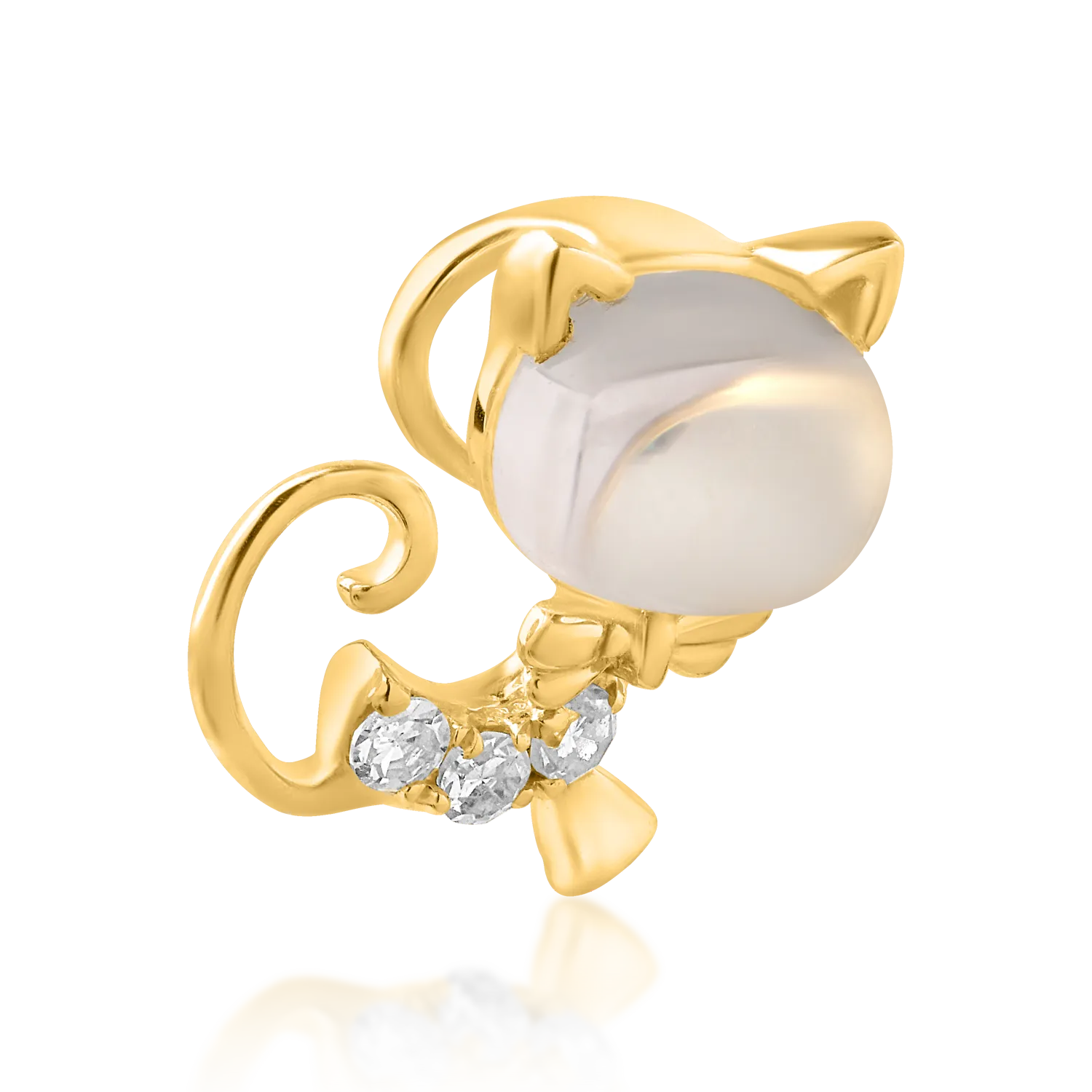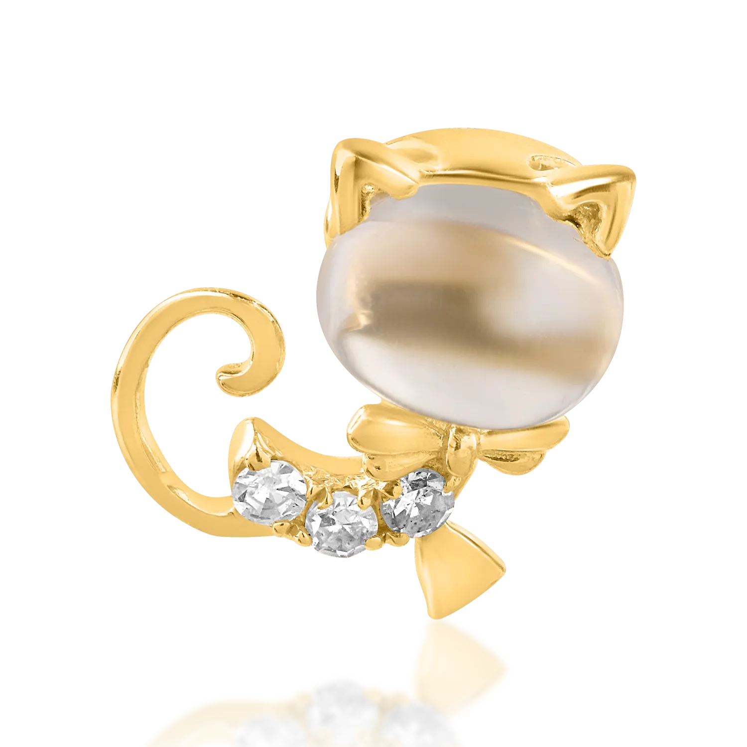 Pandantiv pisicuta pentru copii din aur galben cu topaz alb oval de 0.55ct si diamante de 0.025ct