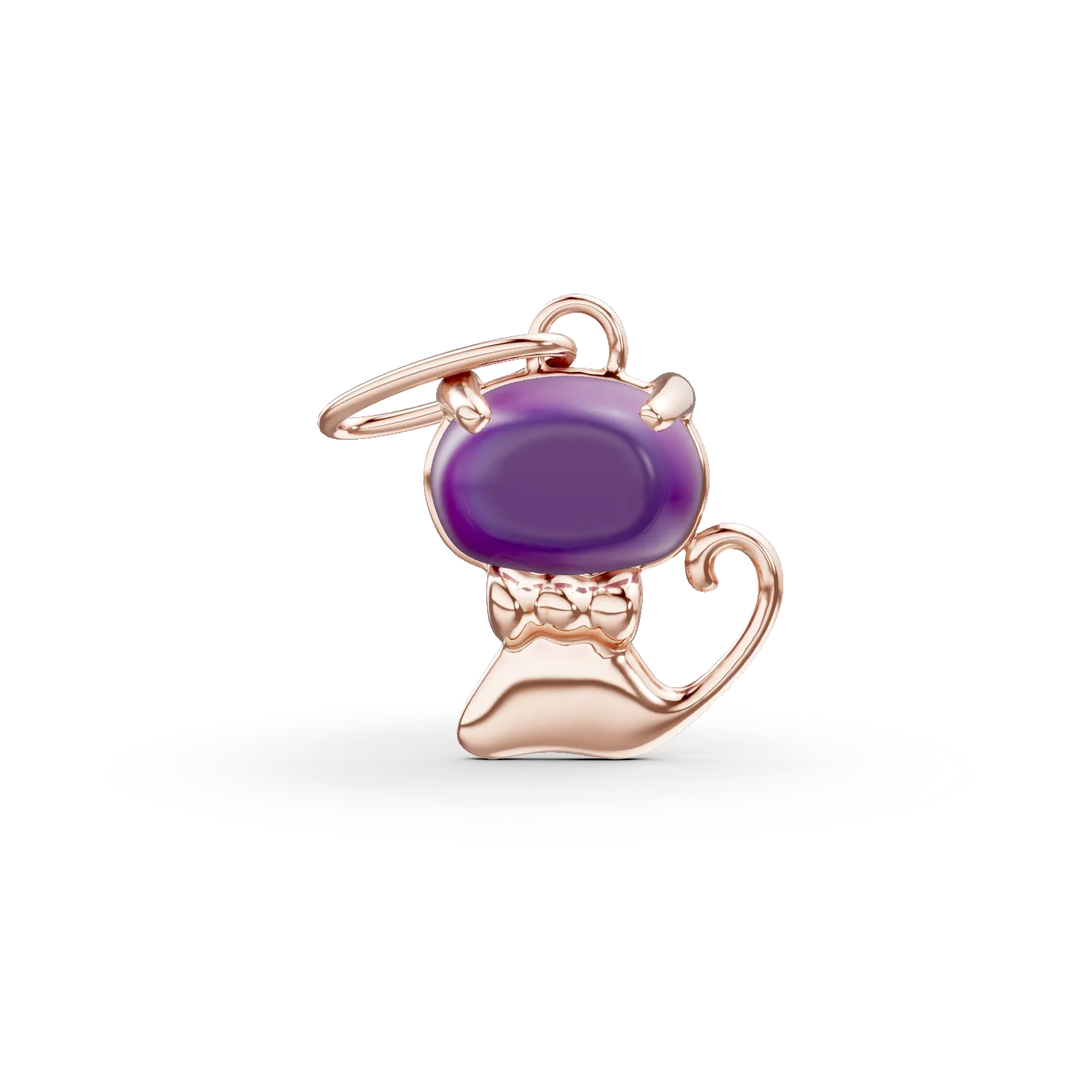 Pandantiv pisicuta pentru copii din aur roz cu ametist oval de 0.3ct